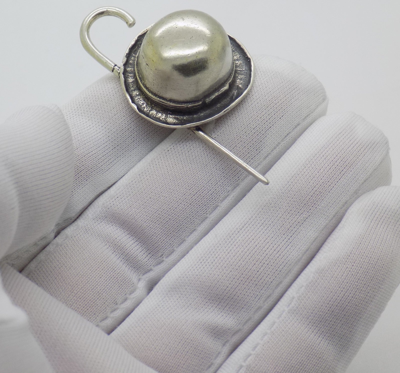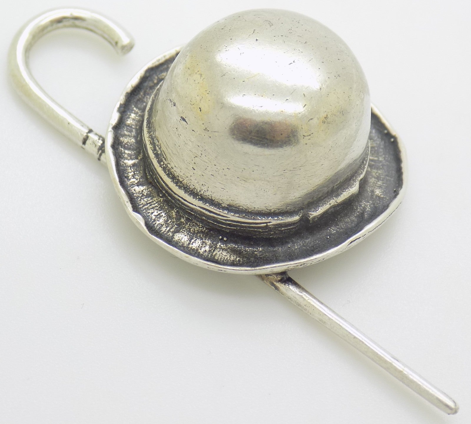 Vintage Italian 800 Silver Bowler Hat Stick Dollhouse Miniature Figurine Novara