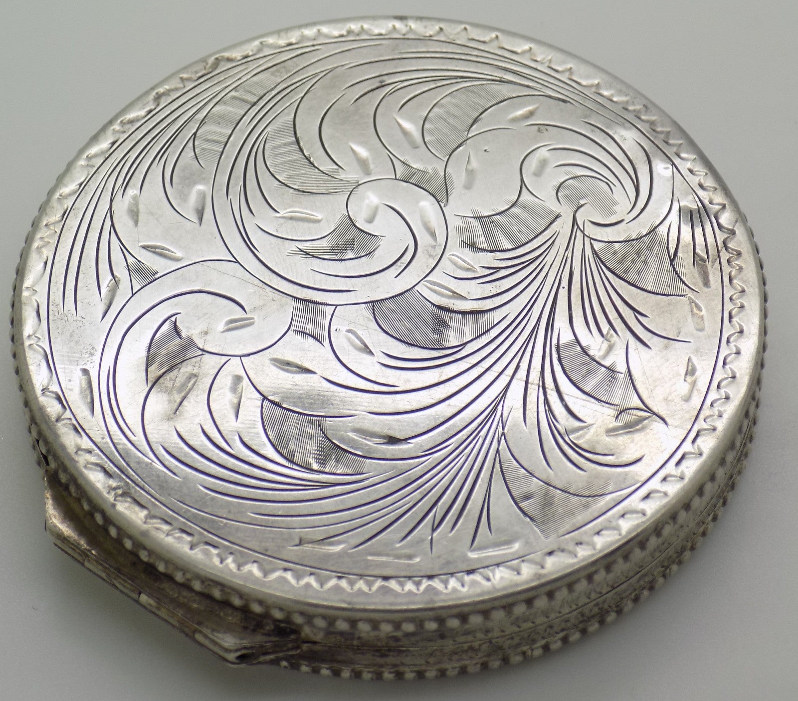 Vintage Italian Handmade 800 Silver Powder Compact Chiseled Handmade Firenze