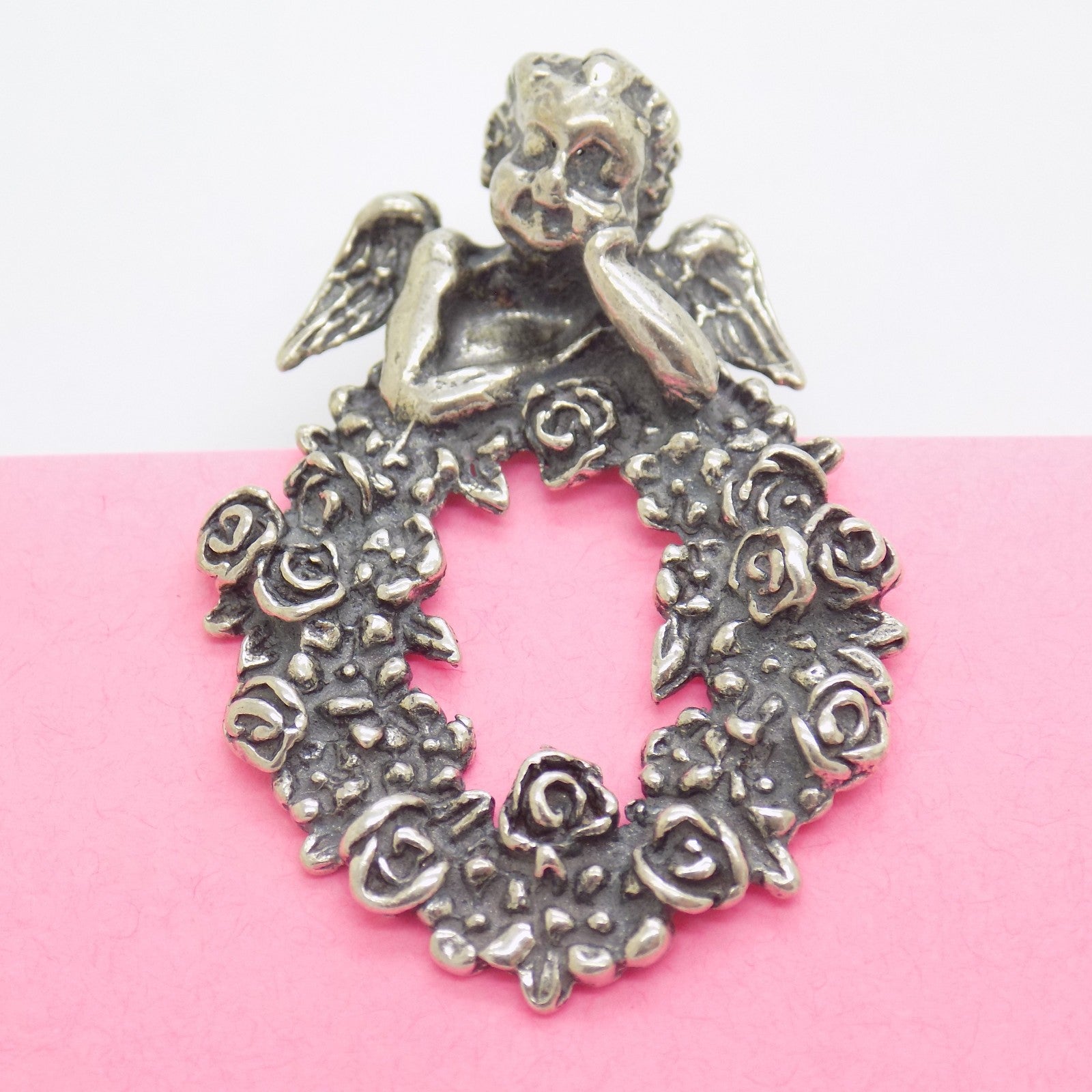 Vintage Italian Handmade Genuine Silver 800 Angel Note Clip Arezzo Tuscany