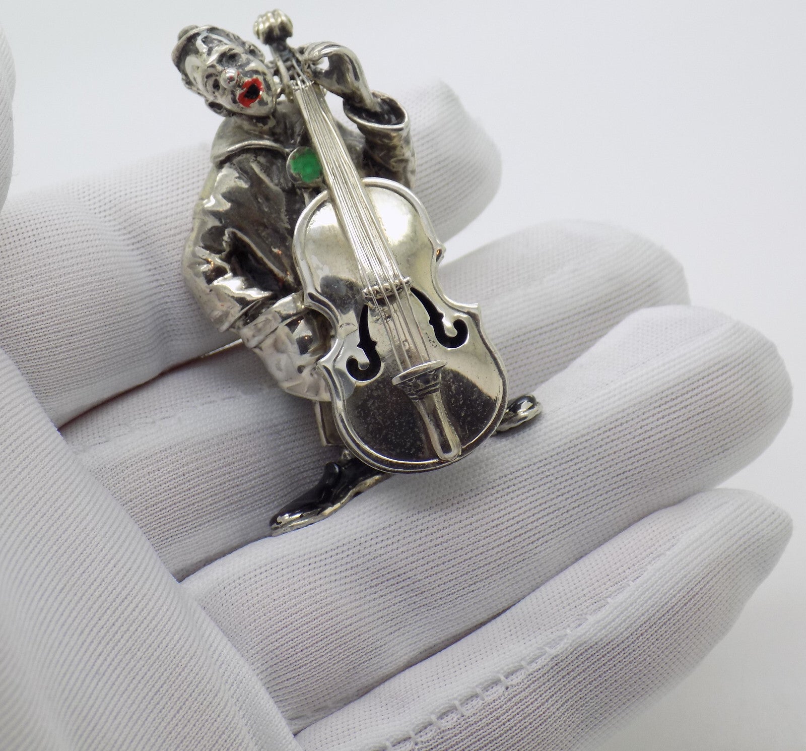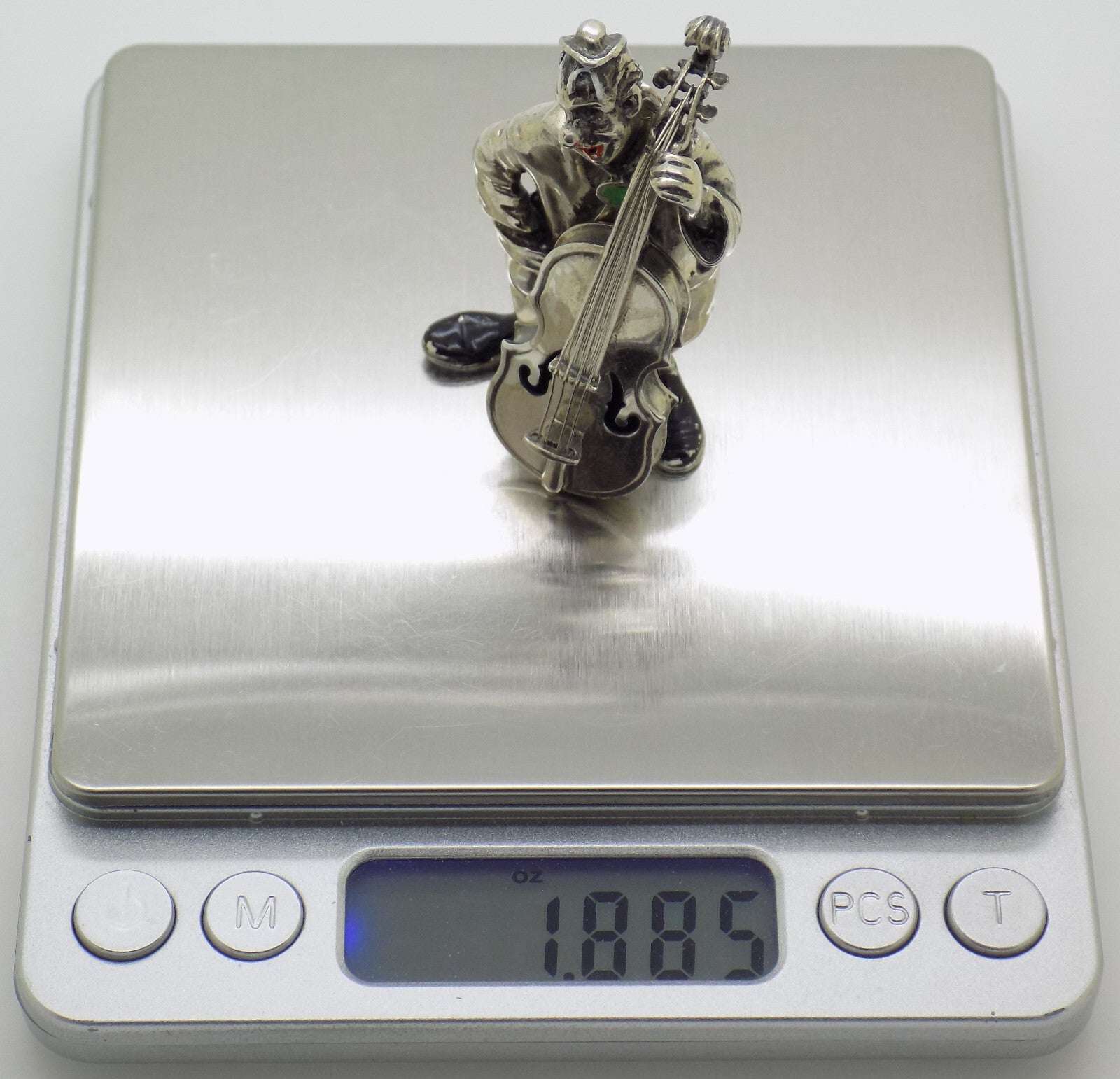 Vintage Italian Handmade Genuine Silver 800 Angini Clown w/t Contrabass Figurine