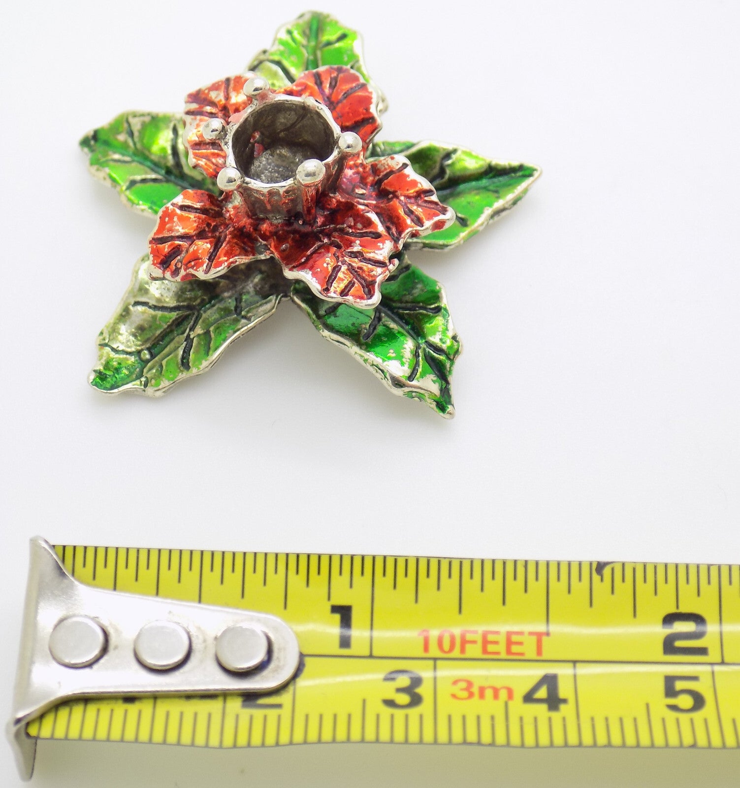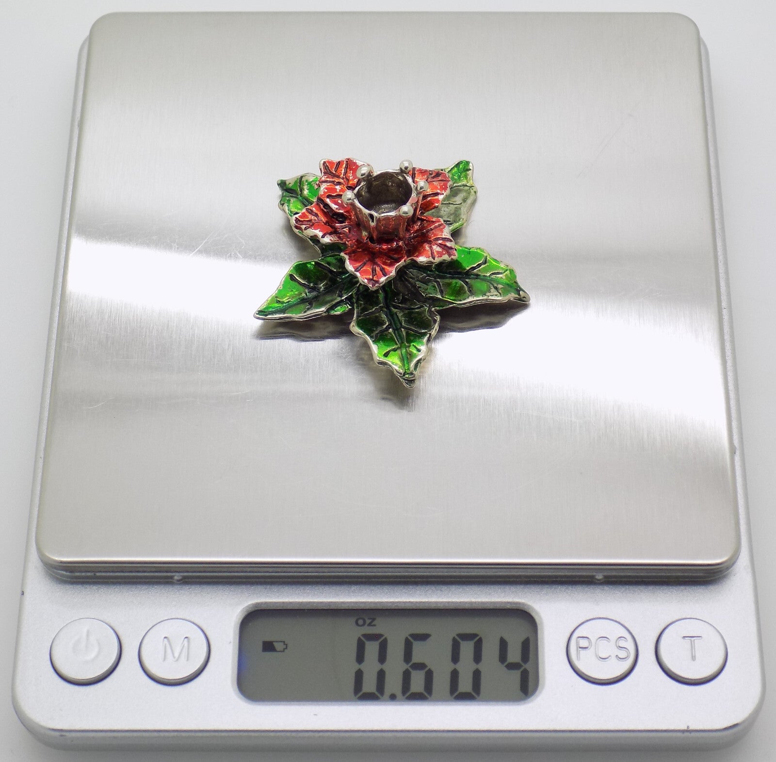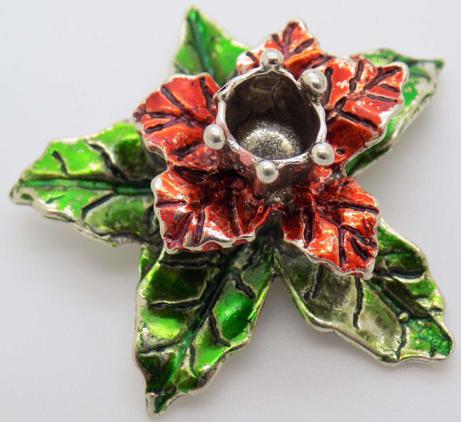 Vintage Italian Handmade Genuine Silver .800 Christmas Poinsettia Candle Holder