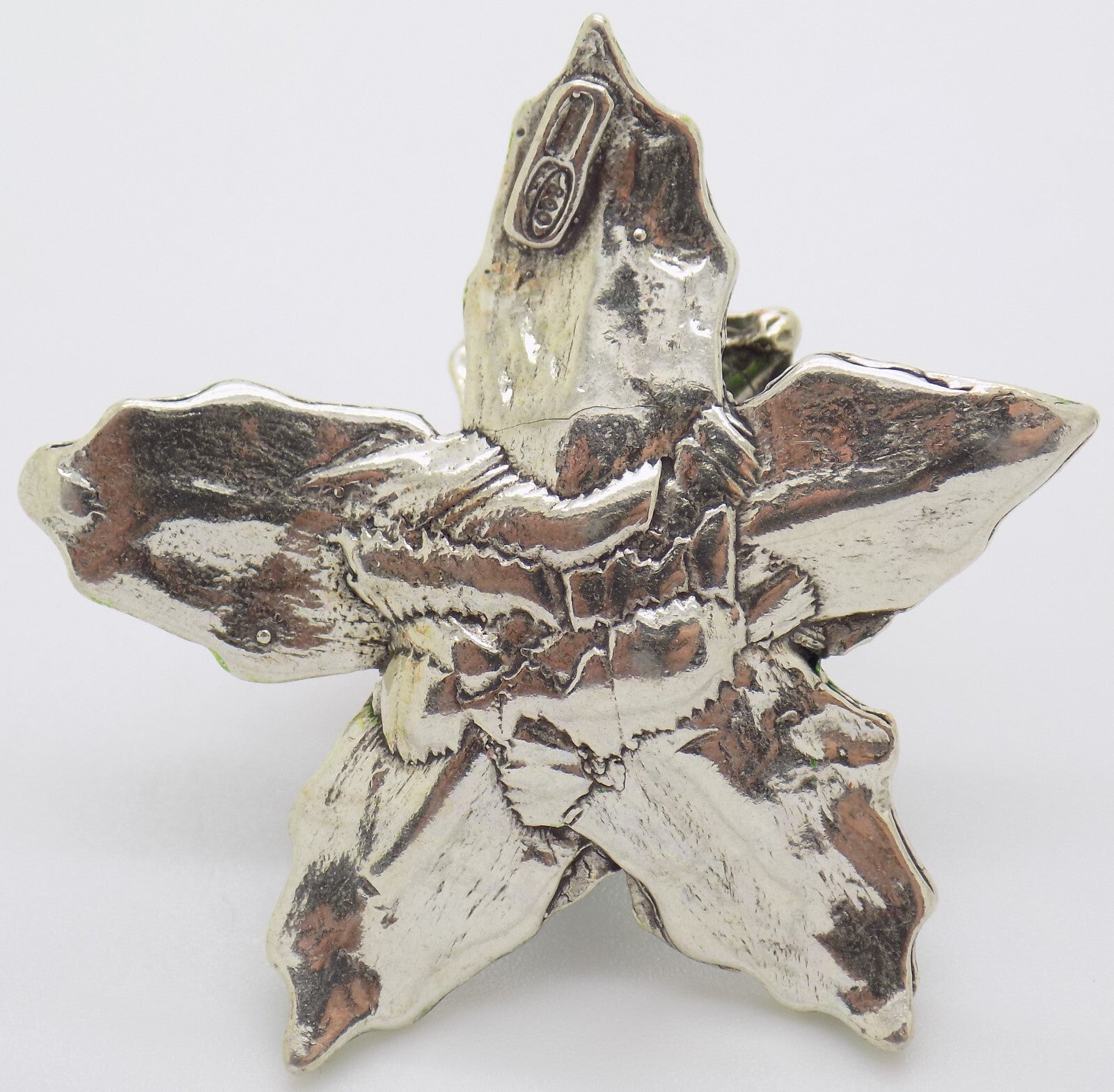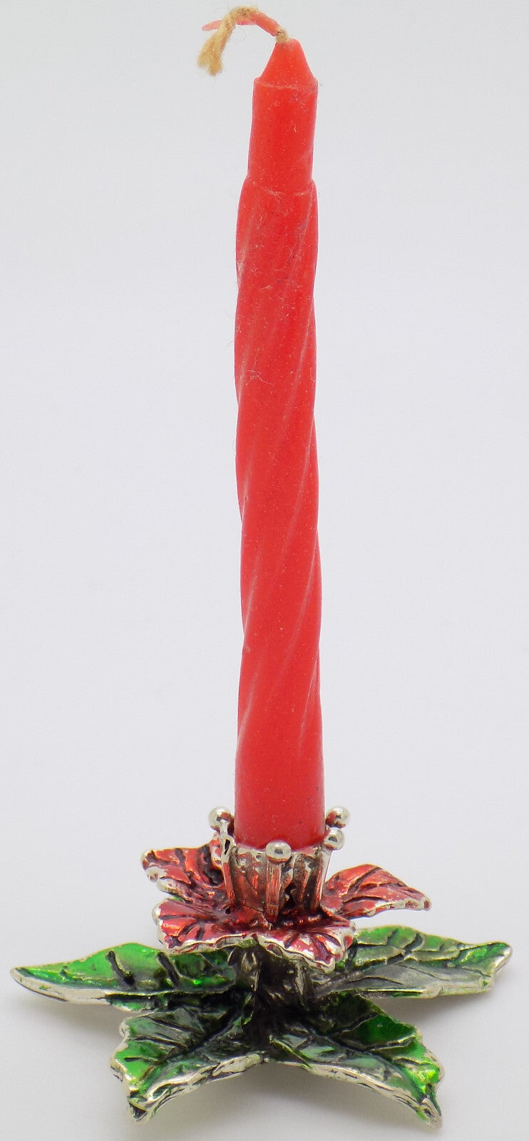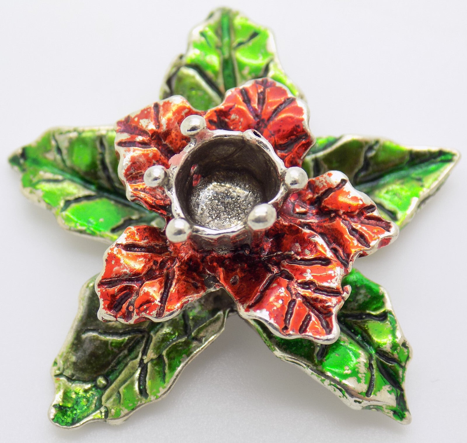 Vintage Italian Handmade Genuine Silver .800 Christmas Poinsettia Candle Holder