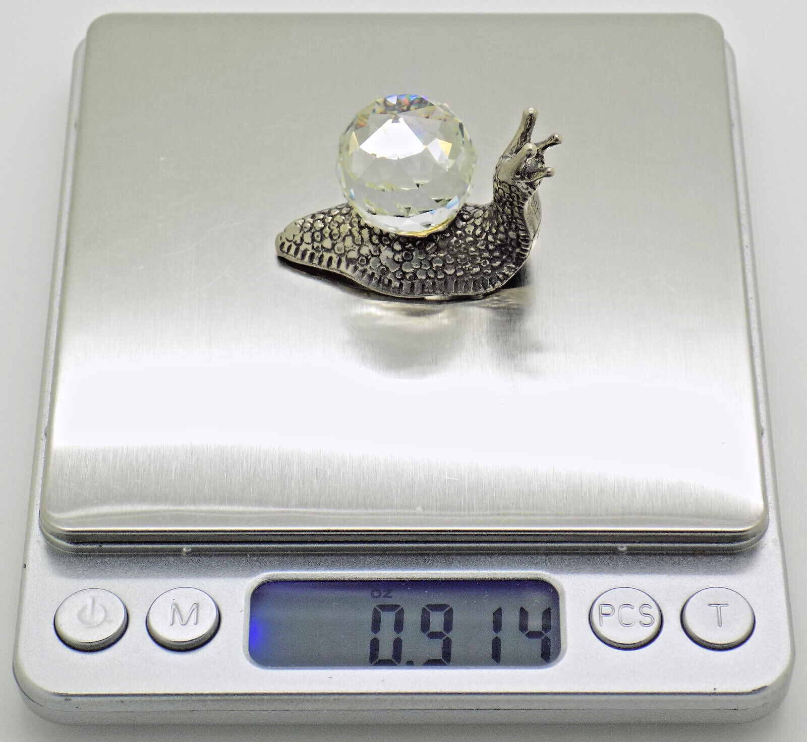 Vintage Italian Handmade Genuine Silver .800 & Crystal LIFE SIZE Snail Figurine
