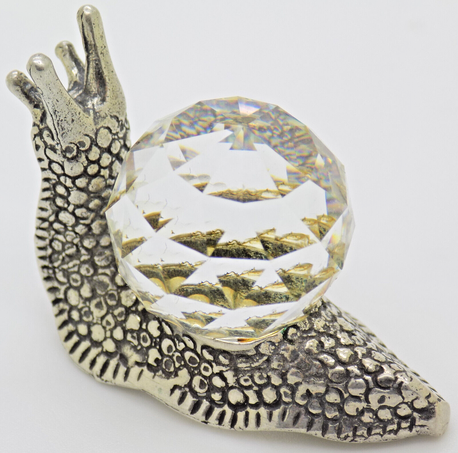 🐌 Vintage Italian Silver Life-Size Snail with Crystal Home 🐌
