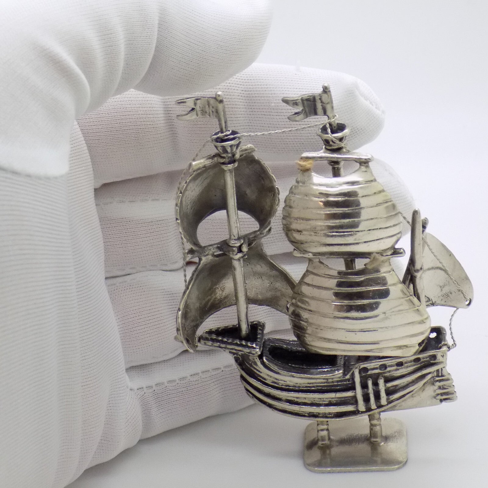 #ItalianSilver #GalleonShipFigurine #GenuineSilver #VSB #CarloConti #TuscanCraftsmanship #CollectibleTreasures #DetailedMiniature #VintageSilverBoutique #UniqueSilverArt