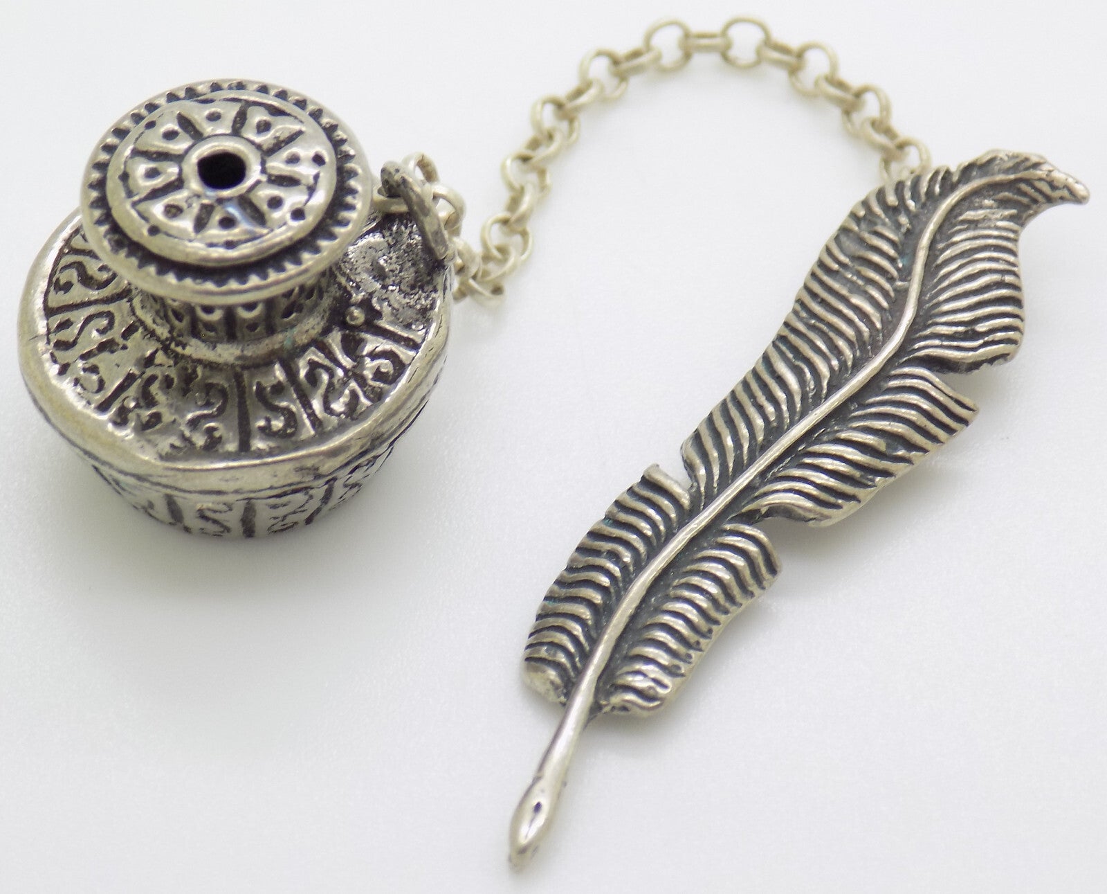 Vintage Italian Handmade Genuine Silver .800 Pen & Inkwell Dollhouse Miniature