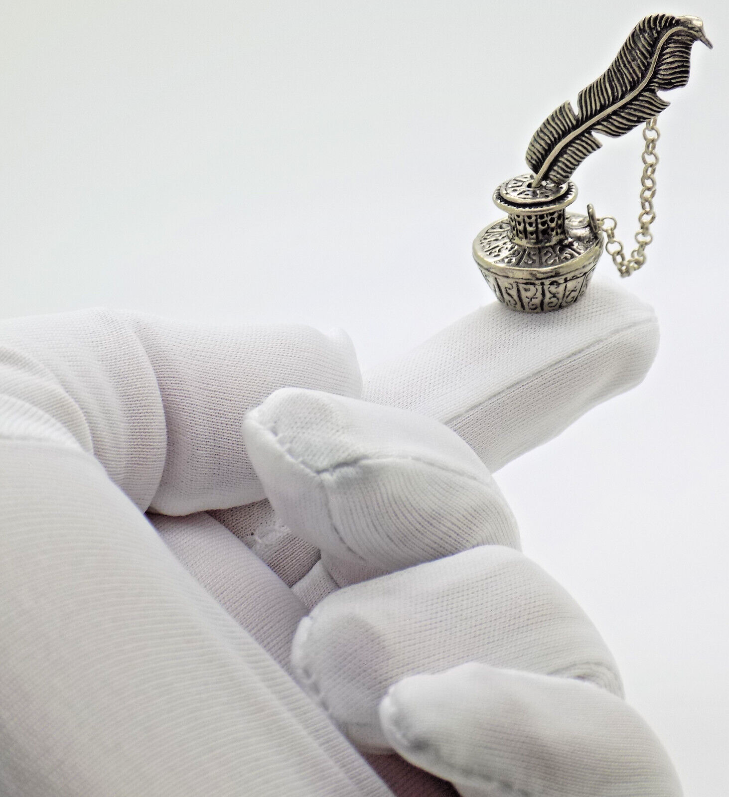 🌟 Vintage Italian Handmade Genuine Silver Pen & Inkwell Dollhouse Miniature 🌟