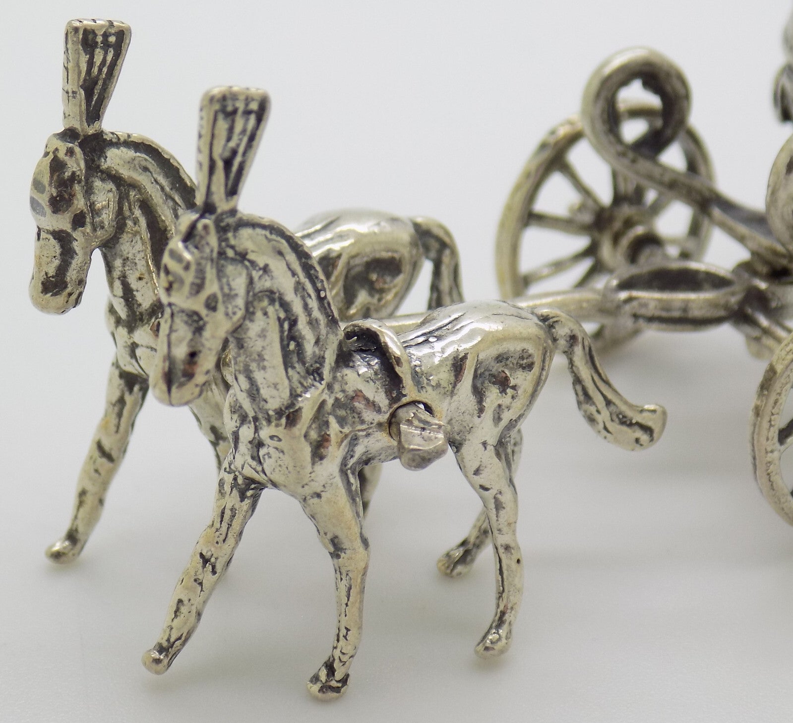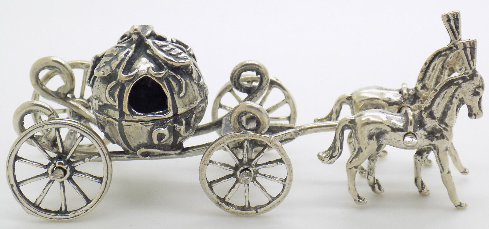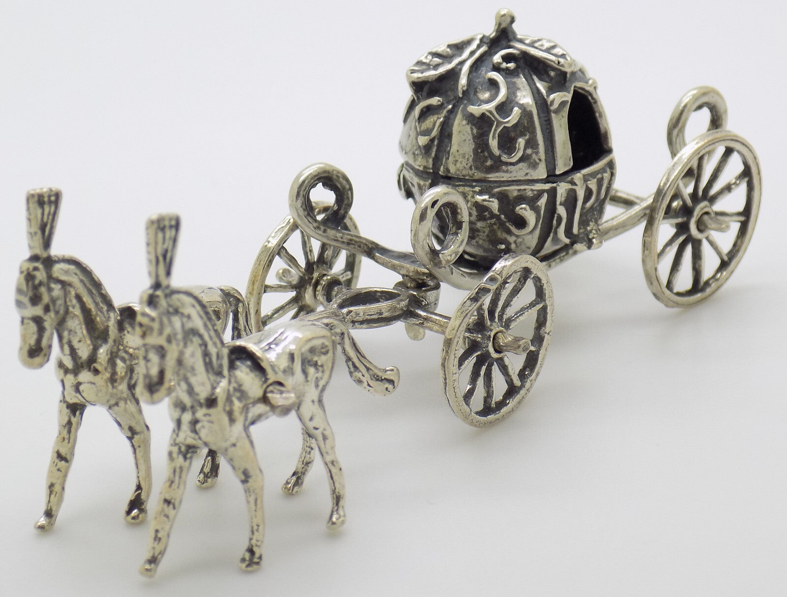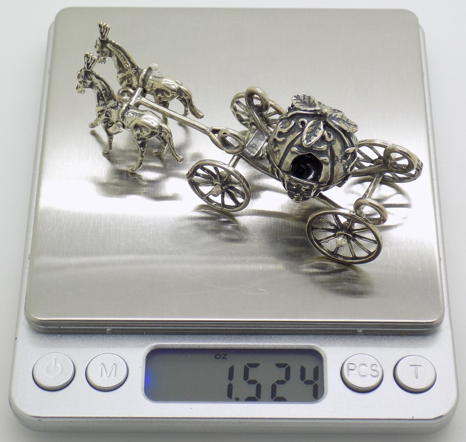 Vintage Italian Handmade Genuine Silver 800 Royal Carriage w/t 2 Horses Figurine