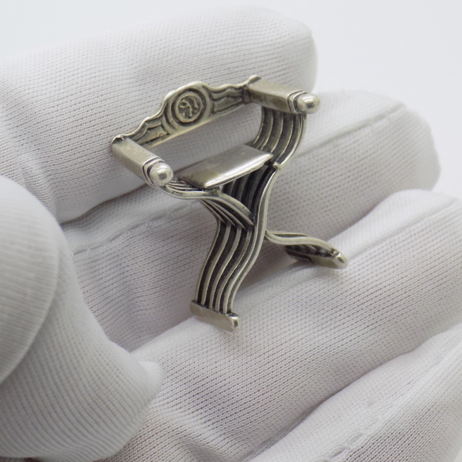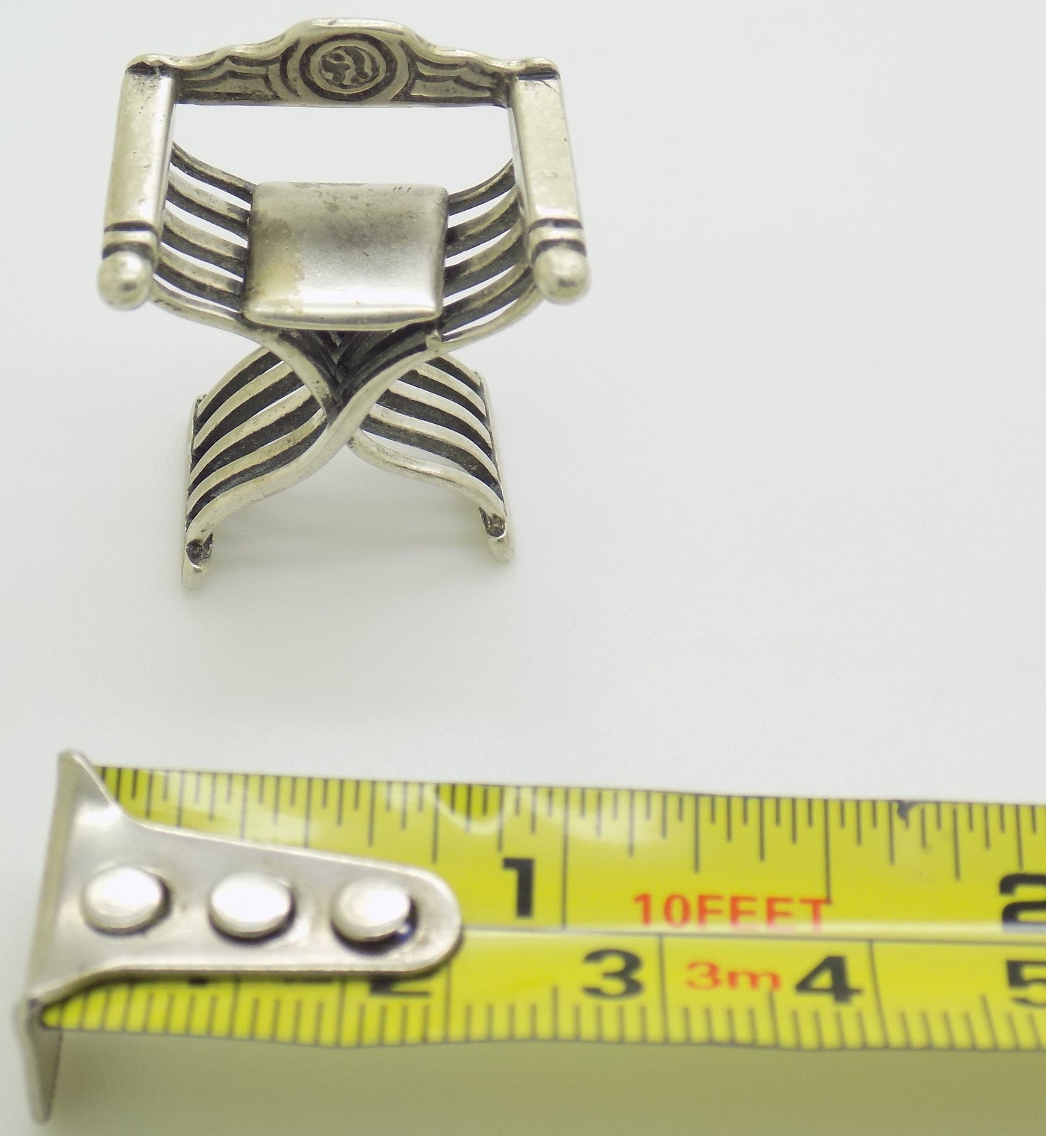 Vintage Italian Handmade Genuine Silver 800 Savonarola Chair Dollhouse Miniature