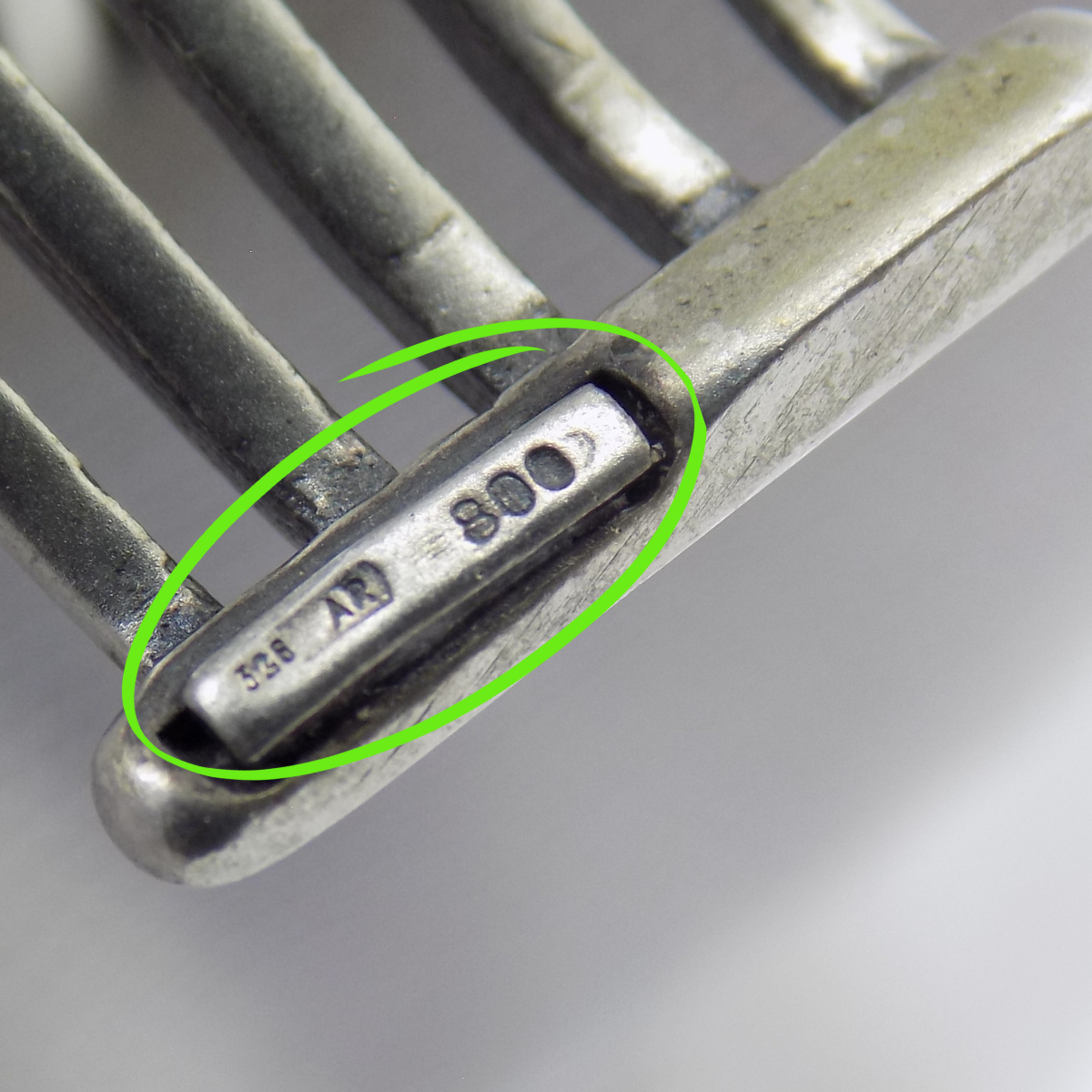 Crafted in Arezzo, Tuscany, this finely detailed miniature reproduces the famous Savonarola chair, a design with Renaissance origins. Hallmarked 800 (Continental Silver 800/000) and bearing the Italian Silversmith Code, it dates from the 1990s/2000s.