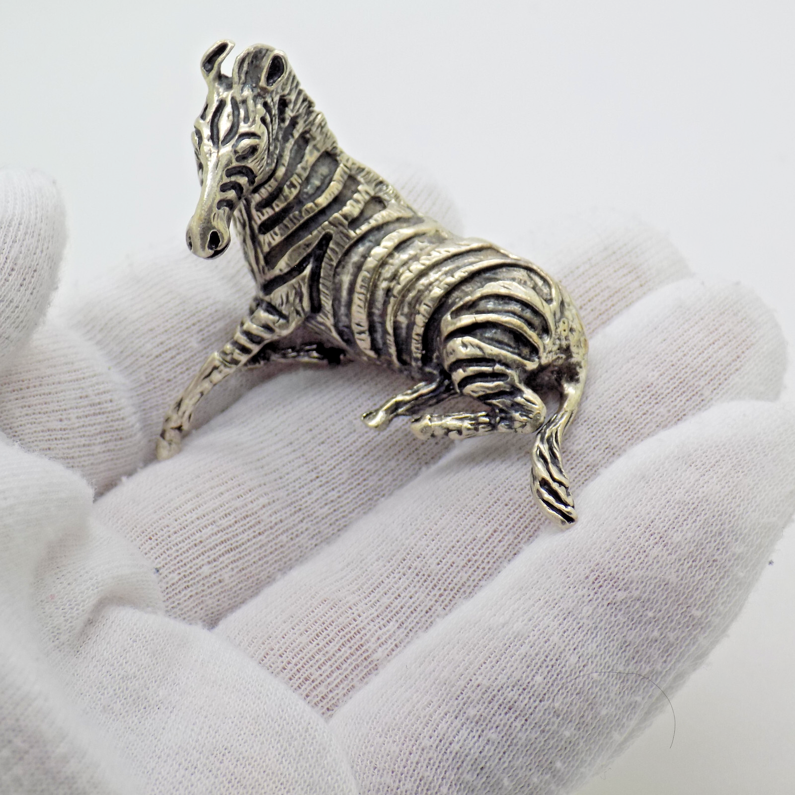 Features: Detailed sitting zebra figurine, hallmarked