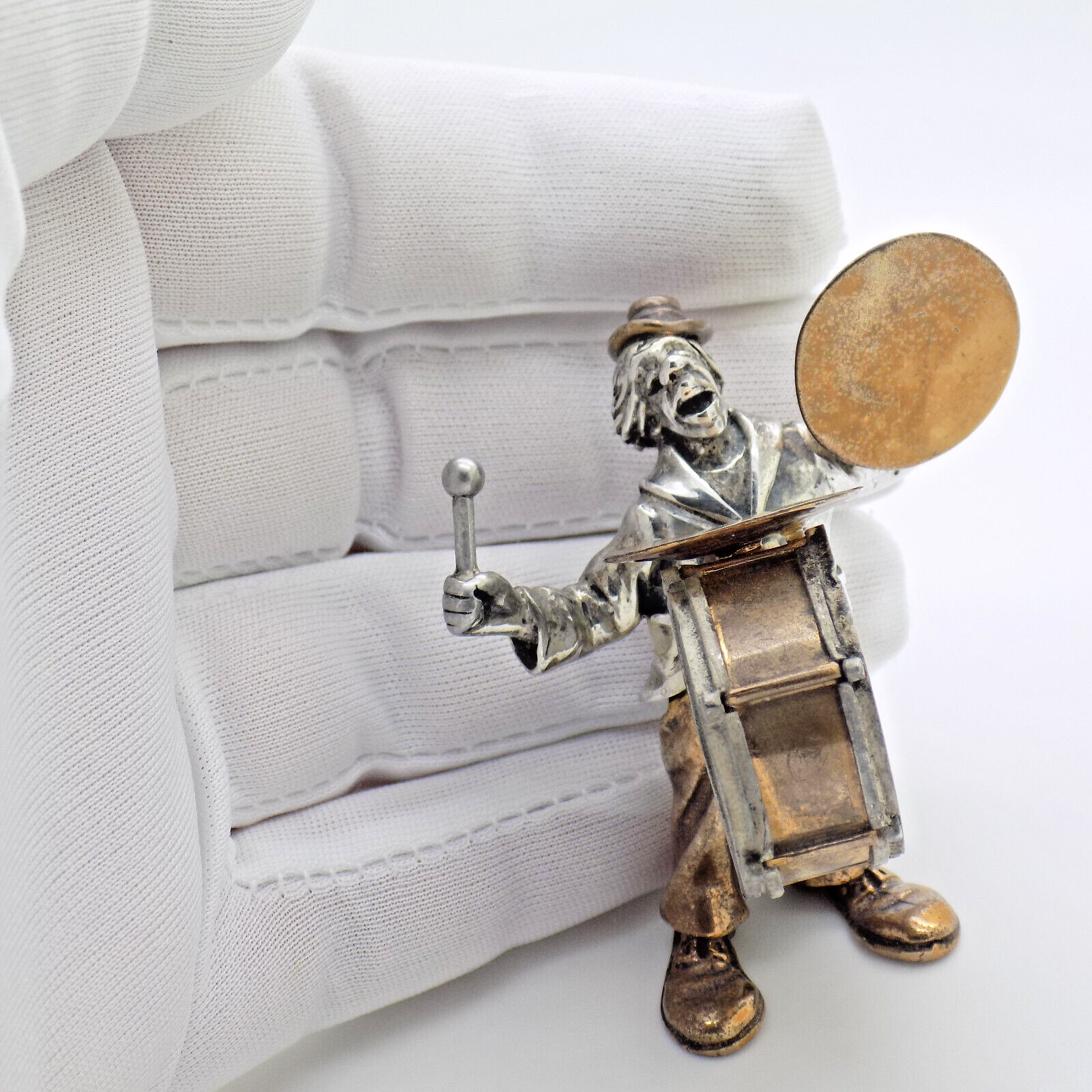 Vintage Italian Handmade Genuine Silver & Brass Rare ANGINI Clown w/t Drums Rare
