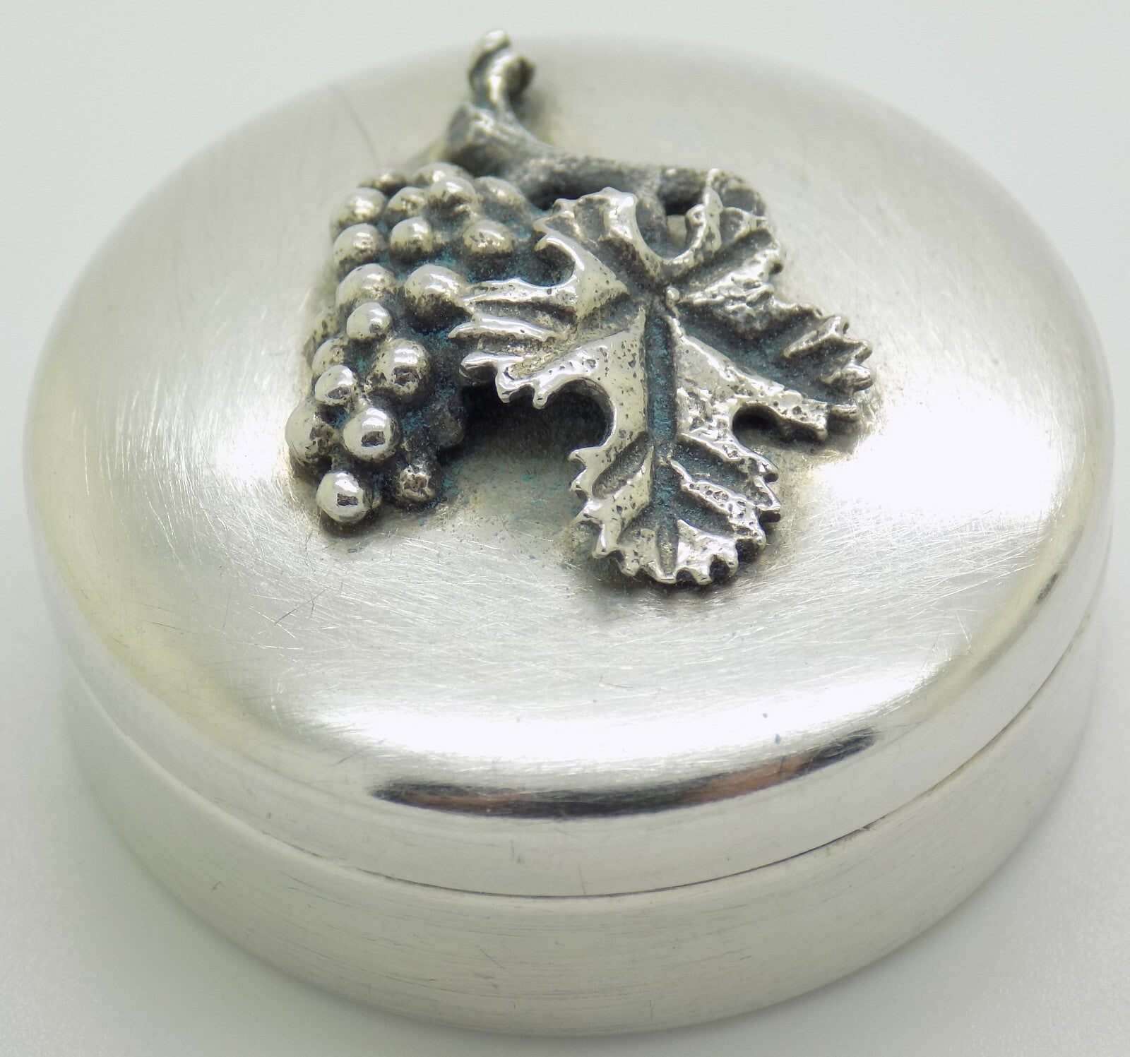 Vintage Italian Handmade Genuine Silver Bunch of Grapes Pill Snuff Trinket Box