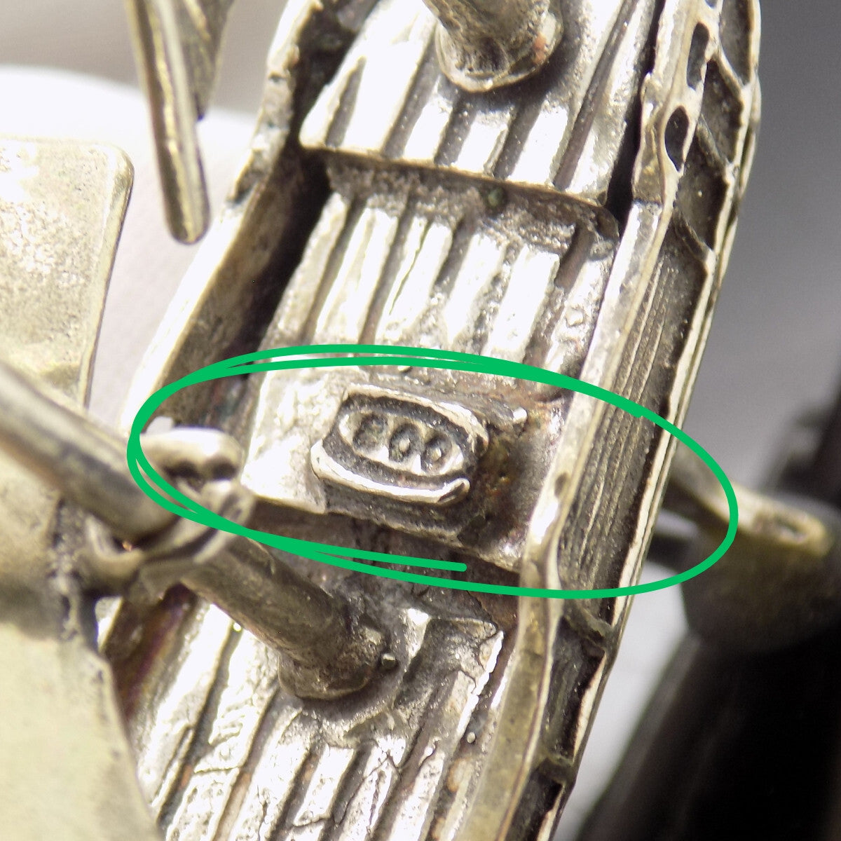 Although the sticker on the base claims it is made out of Sterling Silver 925 (925/000), the figurine is actually made of Continental Silver 800 (800/000). This unique piece, complete with its base, has never been seen on VSB before.