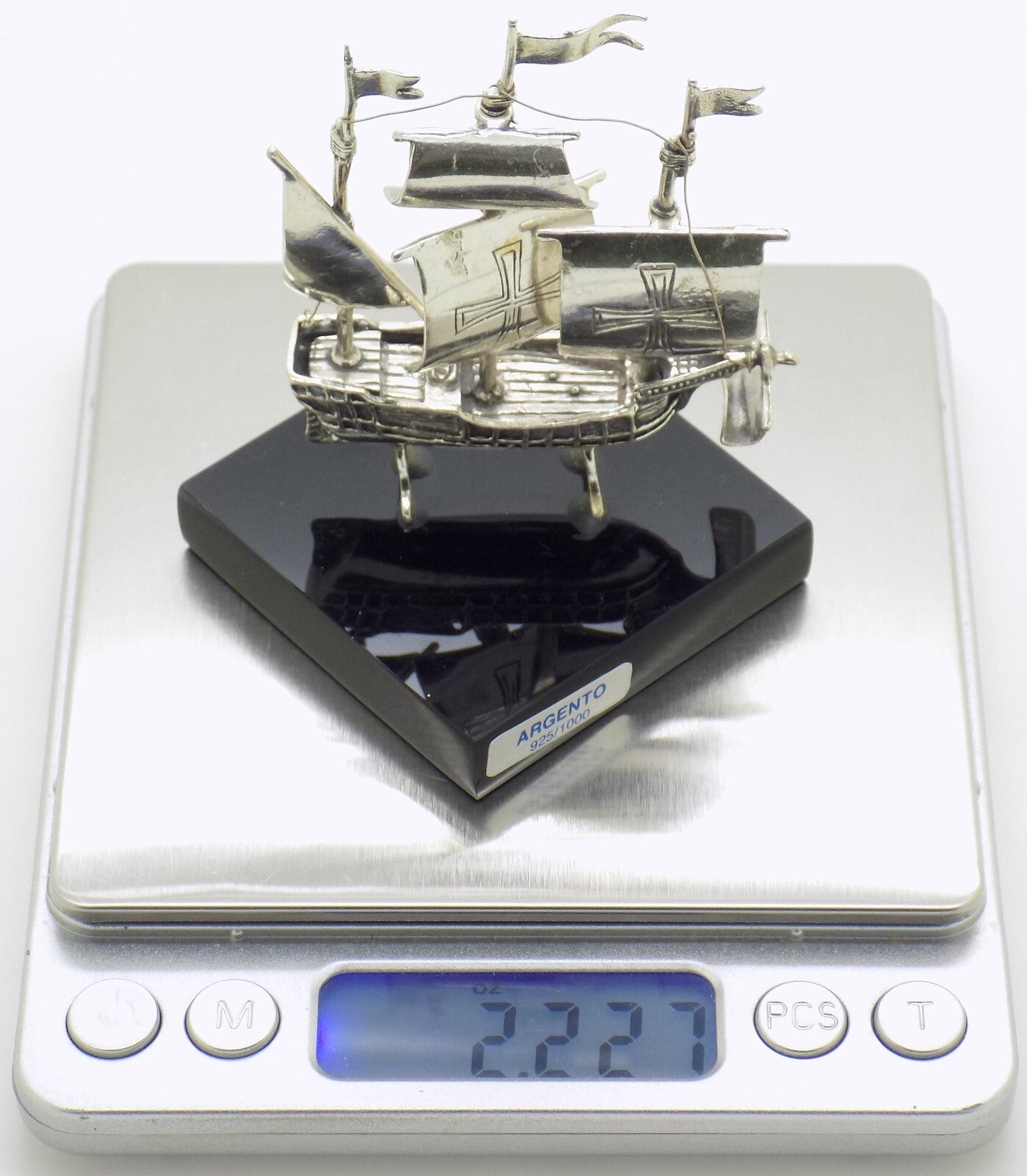 Marvel at this unique Columbus Caravel ship figurine, a stunning example of Italian craftsmanship in genuine silver. ✨