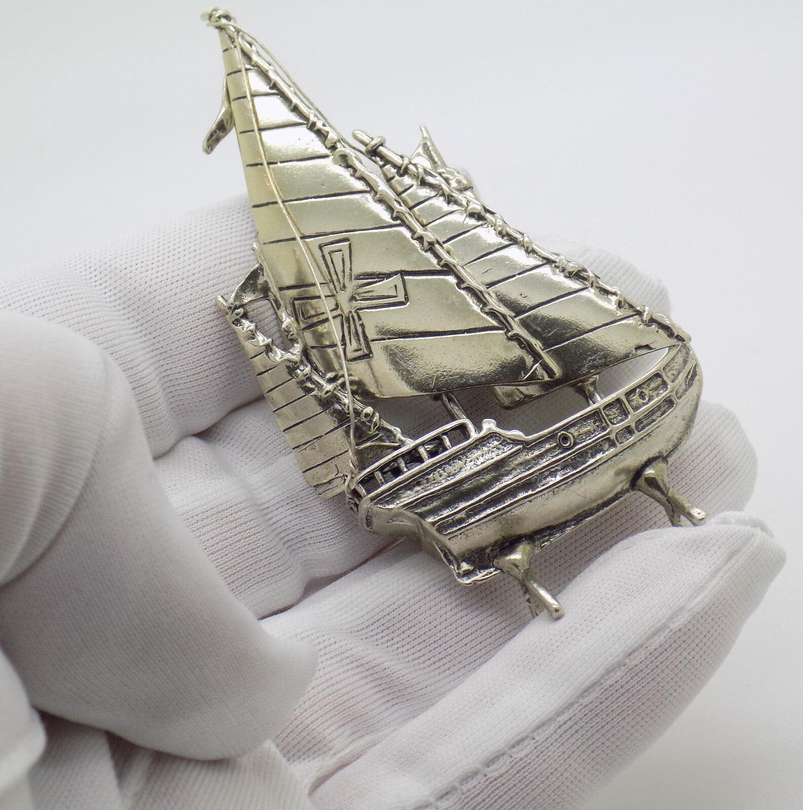 Vintage Italian Handmade Genuine Silver Detailed Crusade Ship Figurine Miniature