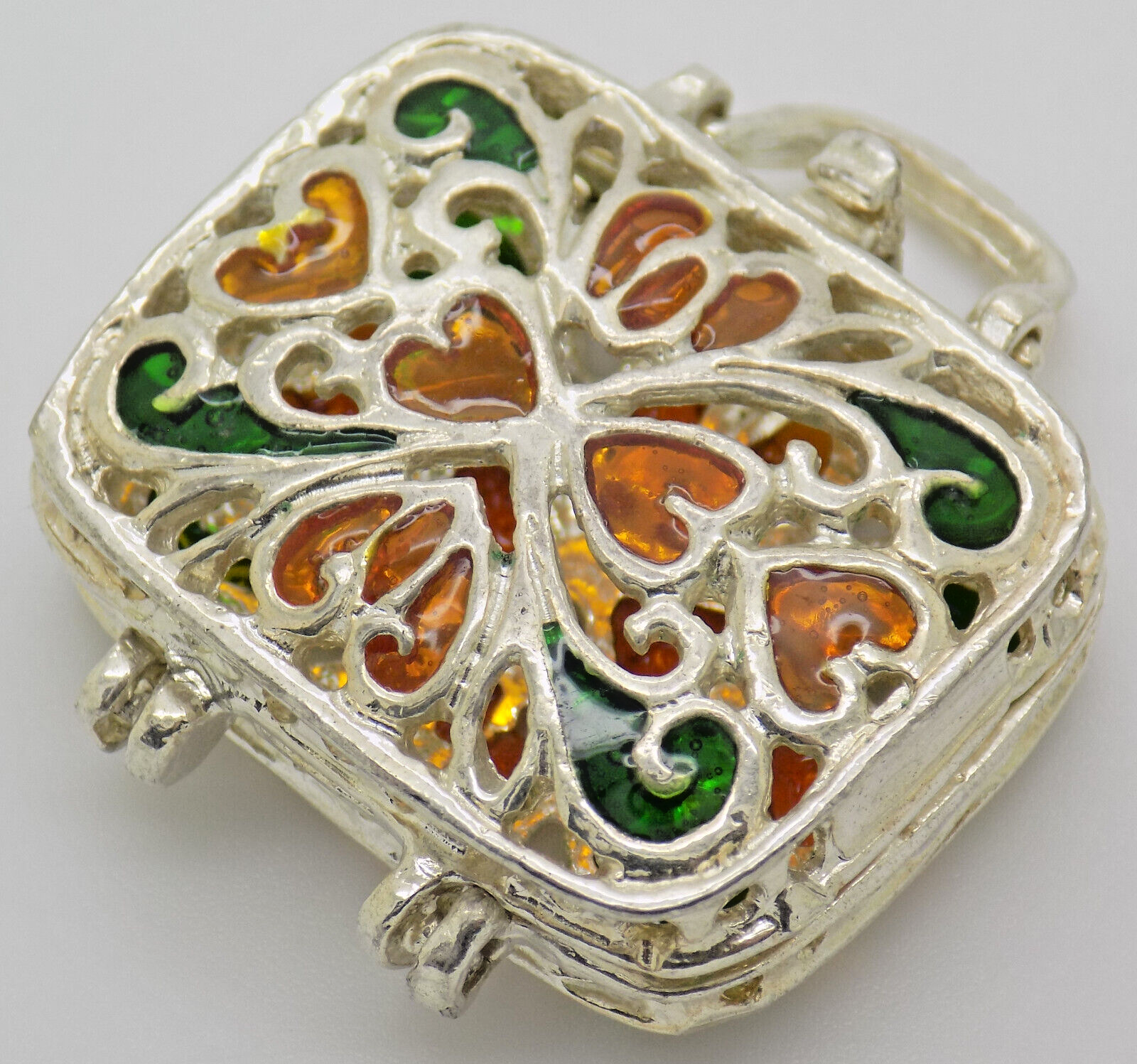 A charming figurine & box ensamble, handcrafted in Italy during the 1970s or 1980s. Hallmarked 800 (Continental Silver (800/000)) with traces of the Italian Silversmith Code, this piece features colored elements that are neither silver nor enamel. This very sweet ensemble is making its first-ever appearance on Vintage Silver Boutique.
