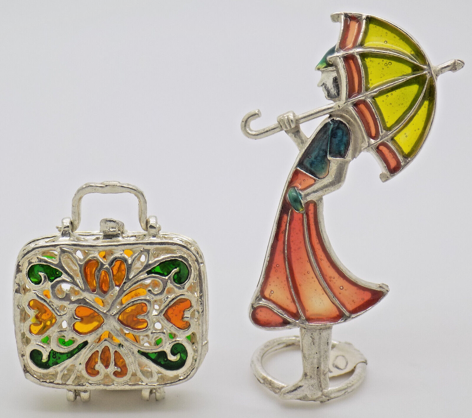 Vintage Italian Handmade Genuine Silver Girl & Luggage Shaped Pill Box Figurines