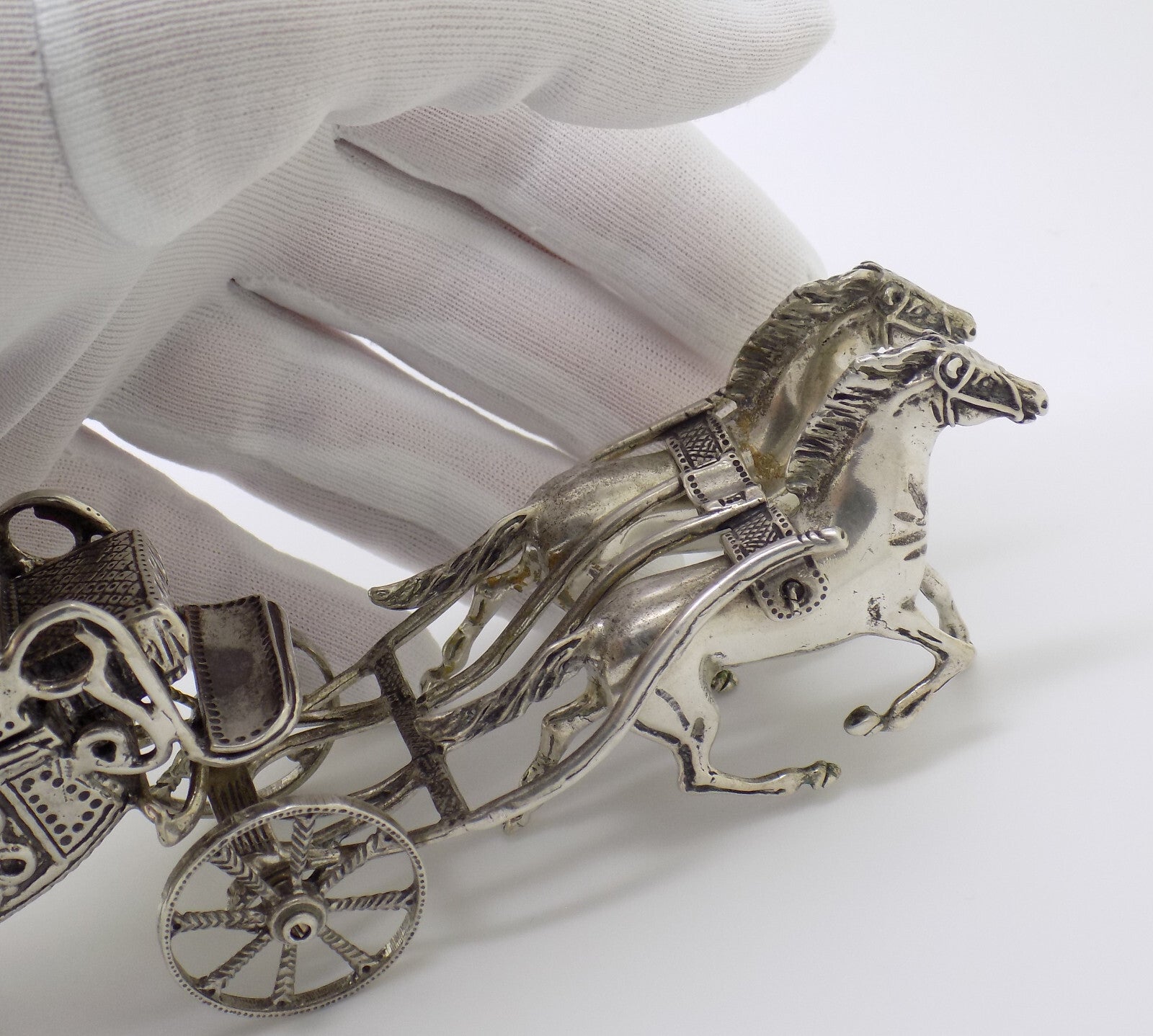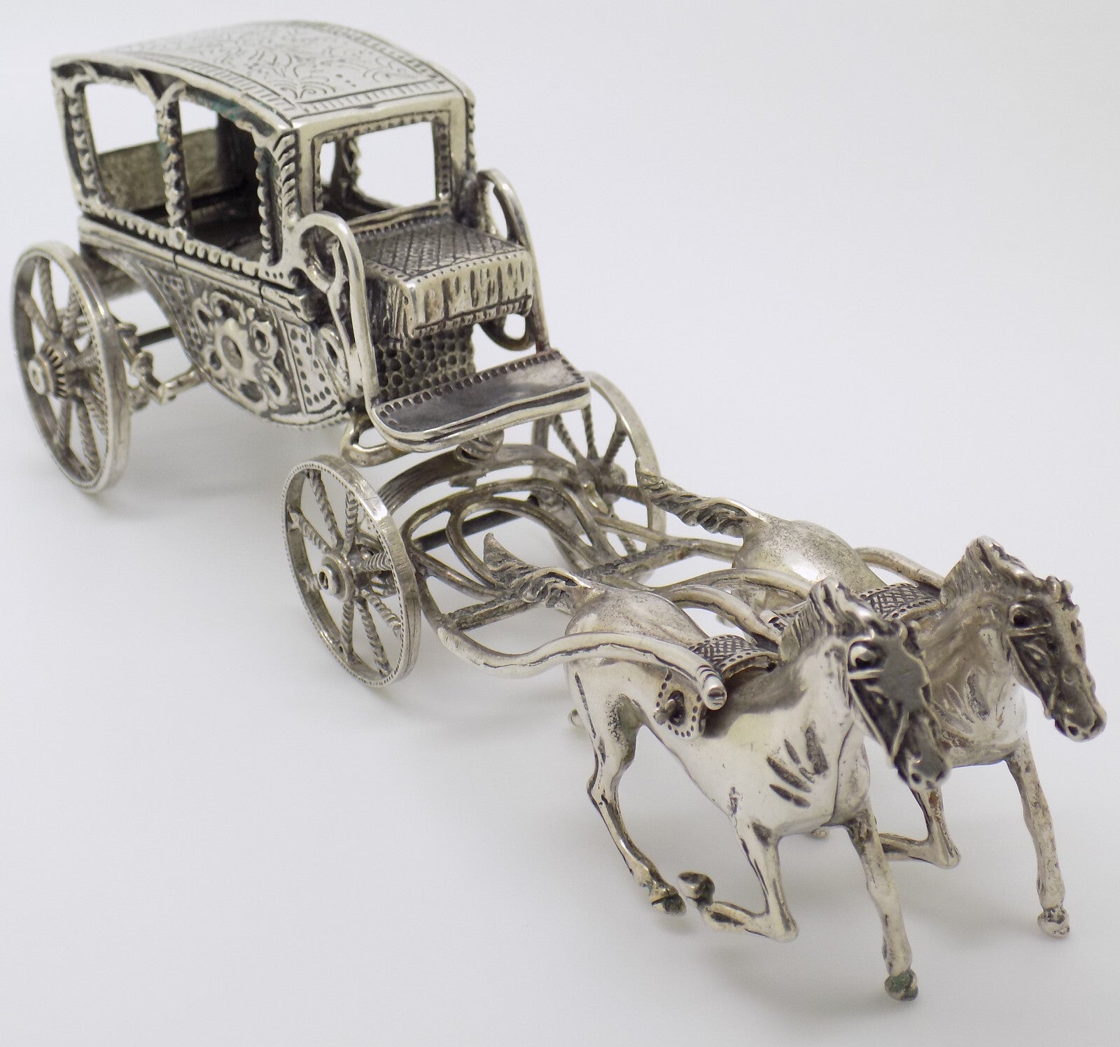 Vintage Italian Handmade Genuine Silver Large Royal Carriage w/t Horses Statue