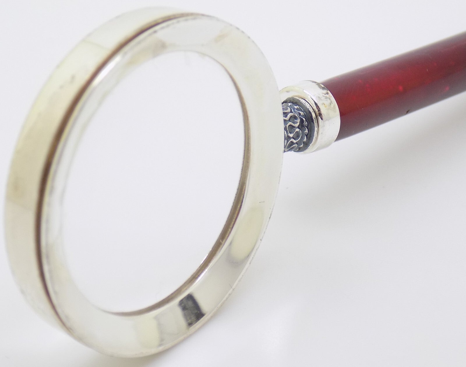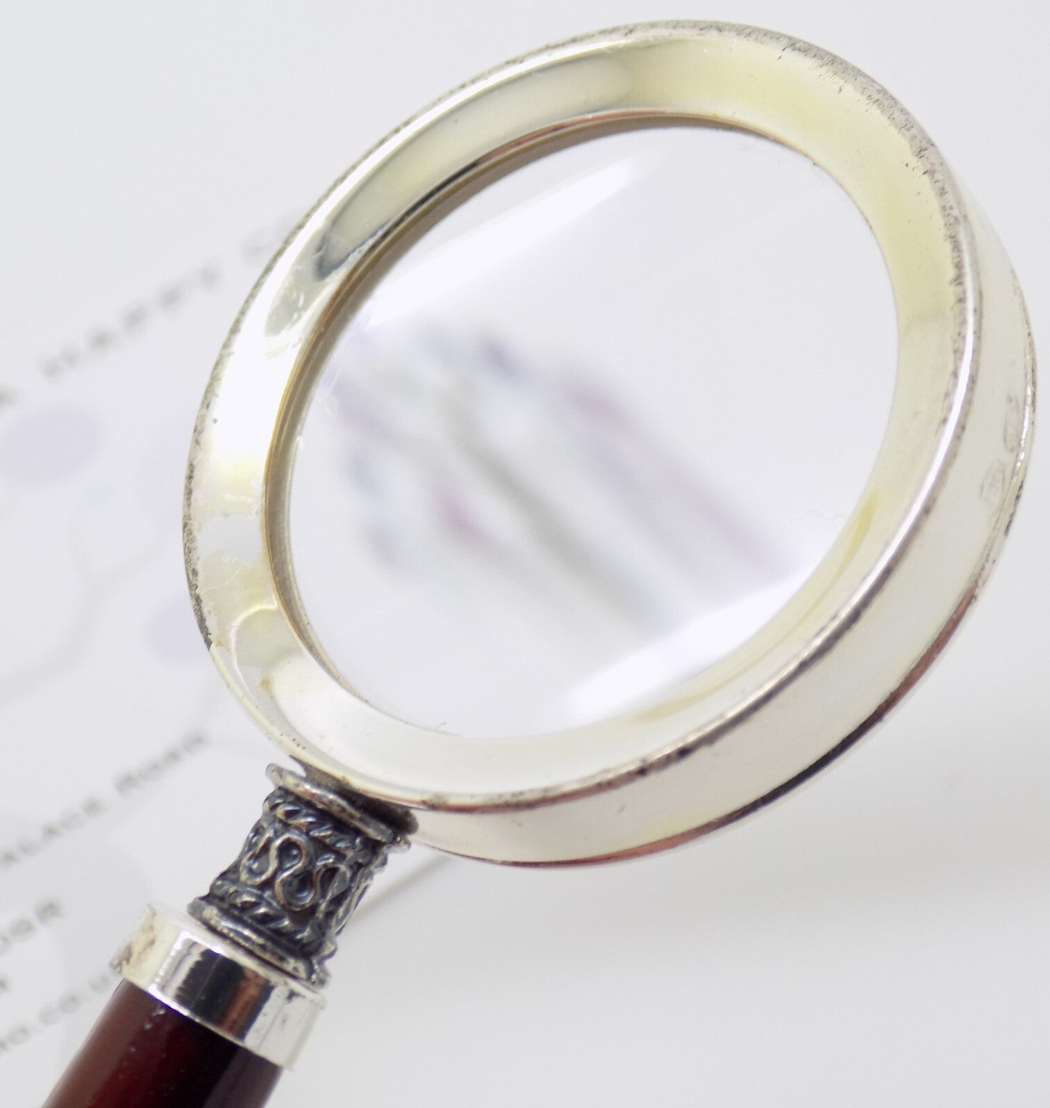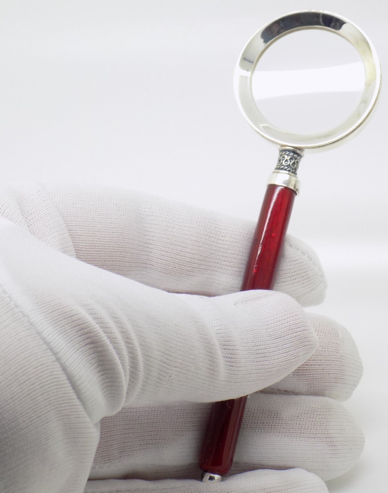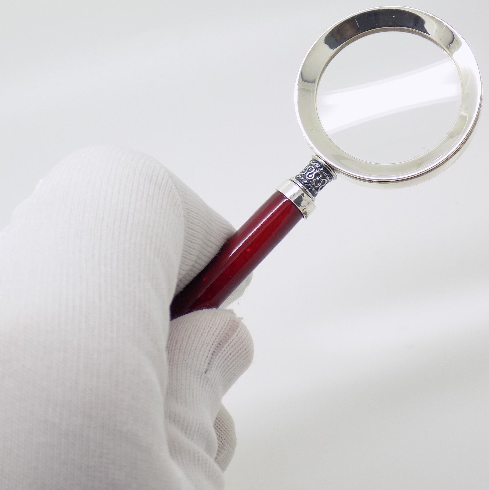 Vintage Italian Handmade Genuine Silver Purse Magnifier with Wooden Handle