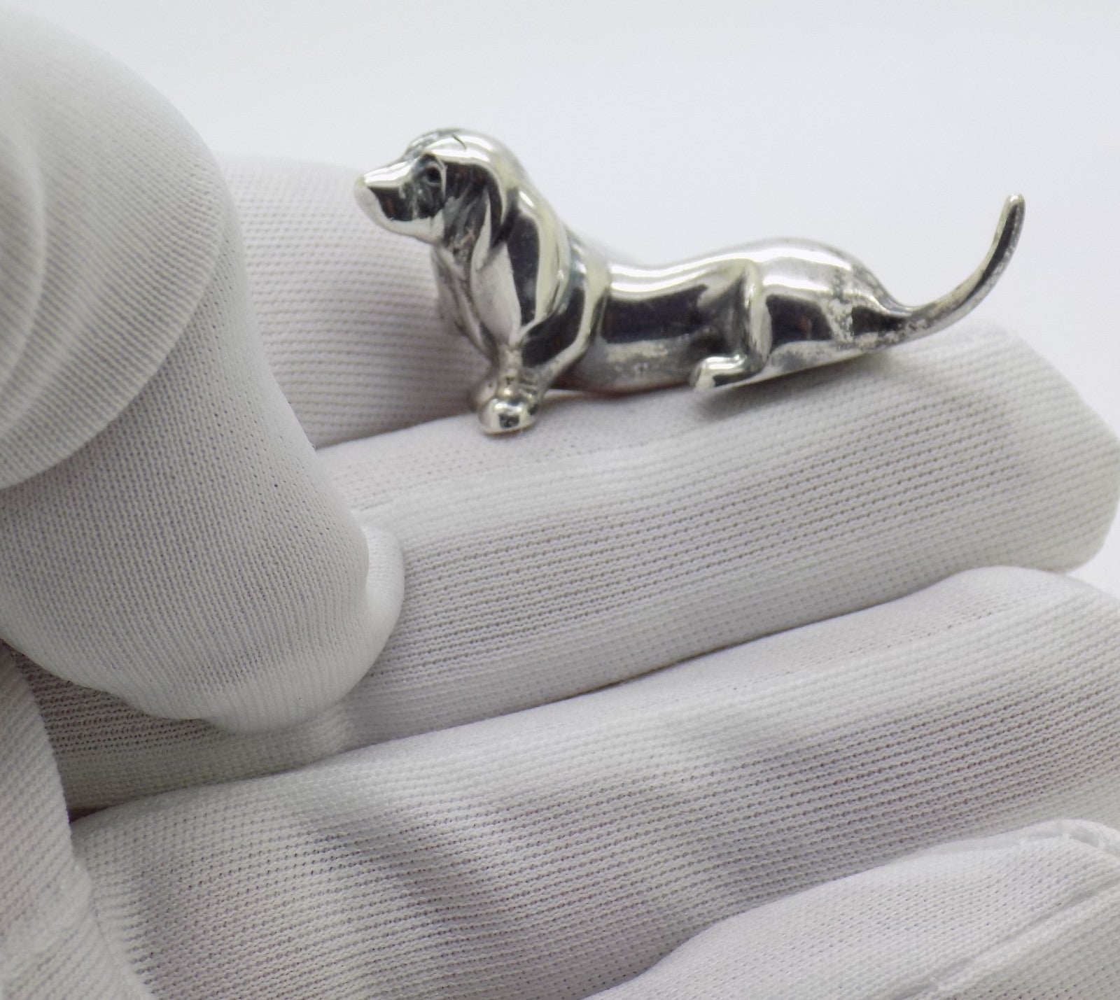 Vintage Italian Handmade Genuine Silver Wiener Dog Dachshund Dollhouse Miniature