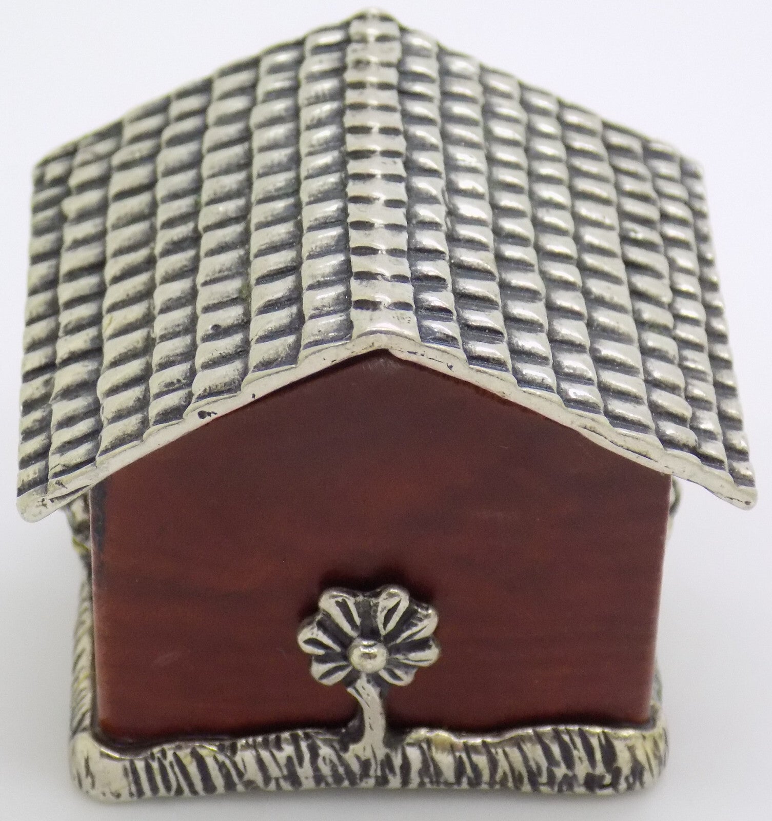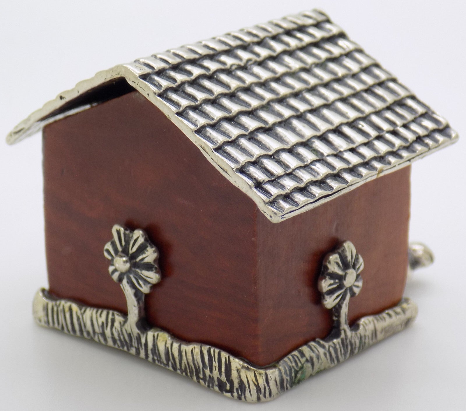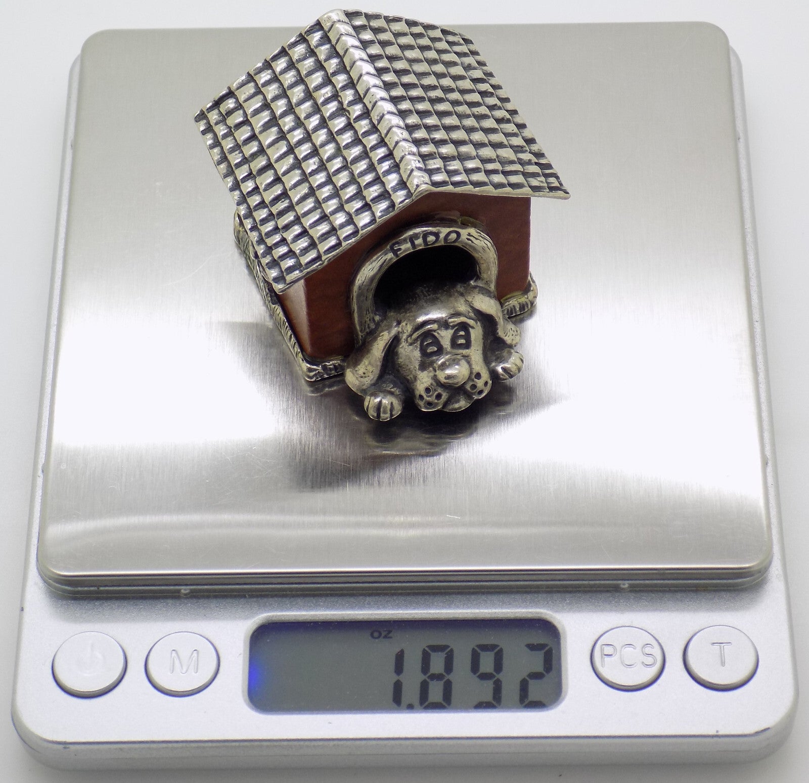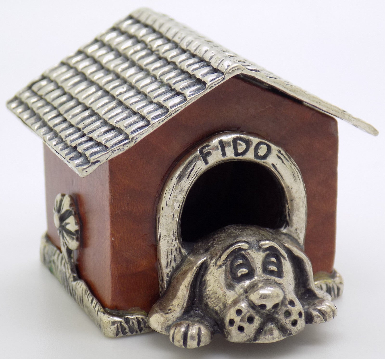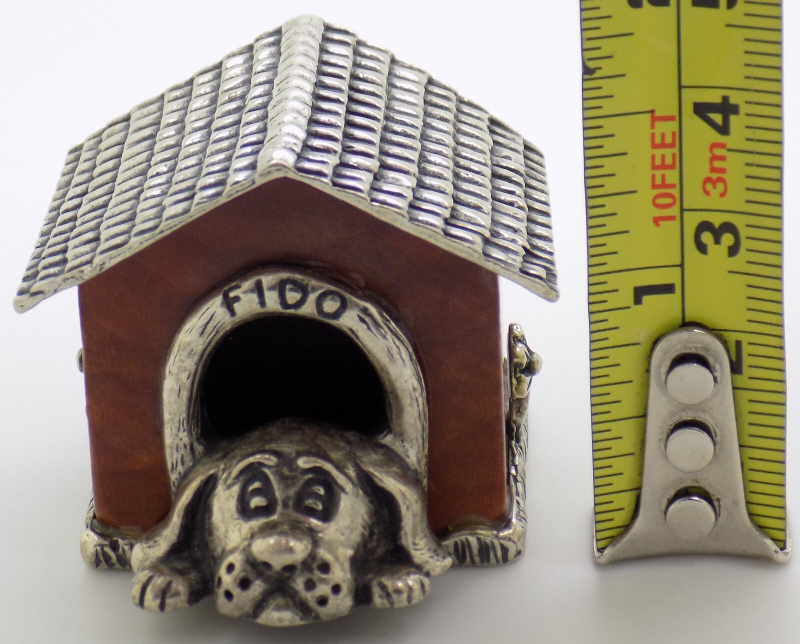 Vintage Italian Handmade Genuine Silver & Wooden LARGE Doghouse & Dog Figurine