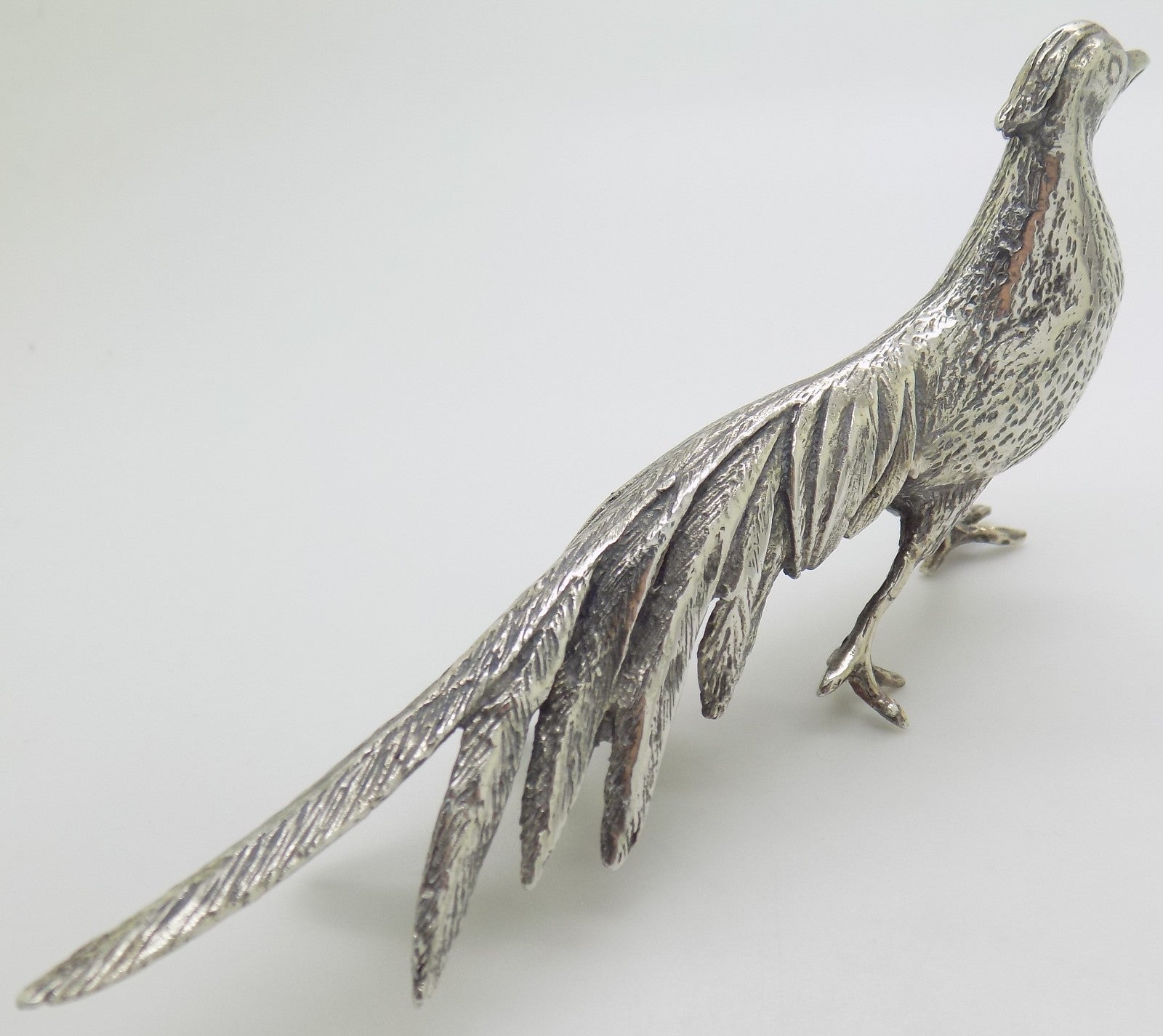 Vintage Italian Handmade Silver 800 Pheasant Large Figurine Animal Sculpture