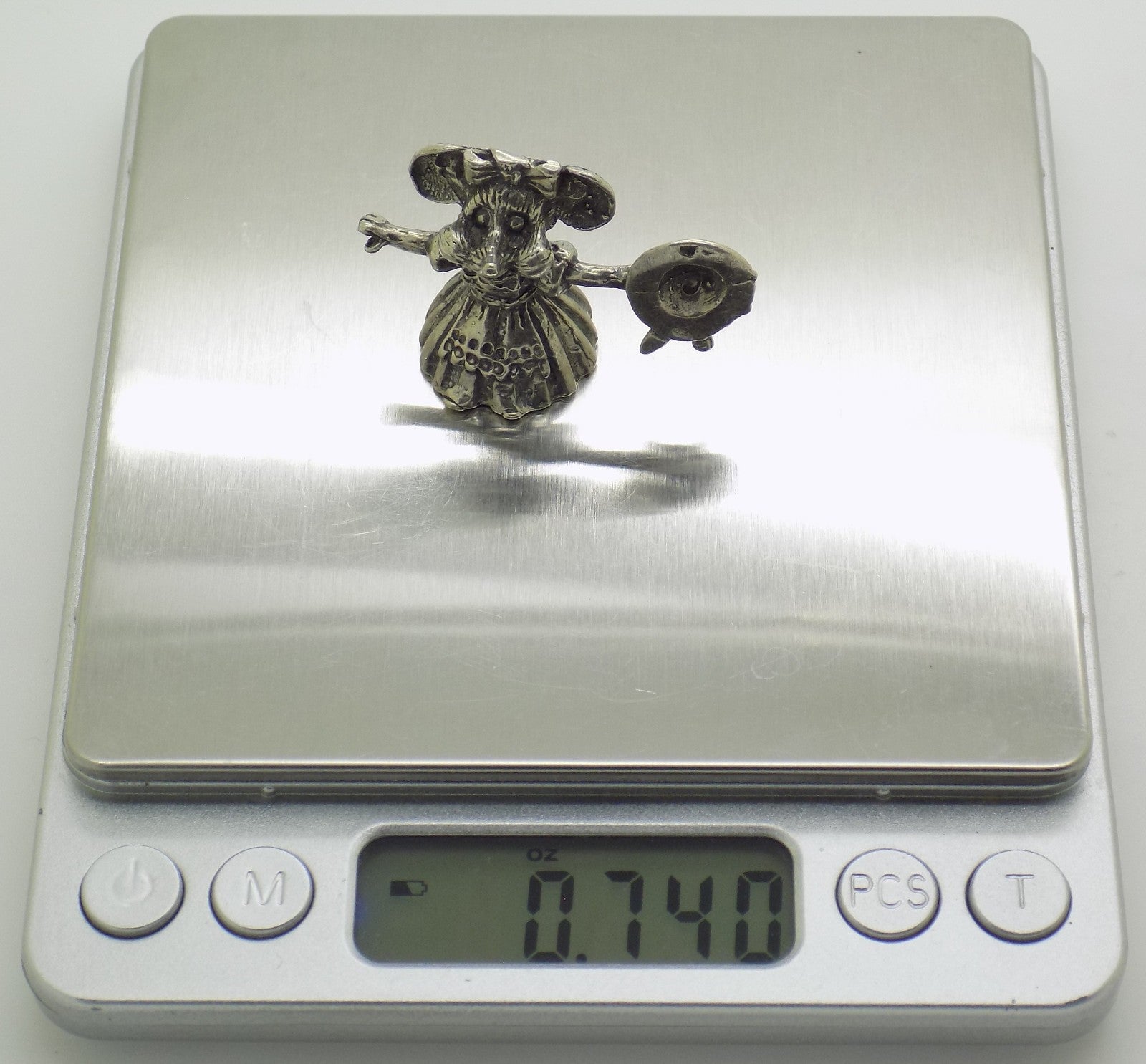 Vintage Italian Handmade Silver 800 RARE Country Cartoon Mouse Figurine Miniatur