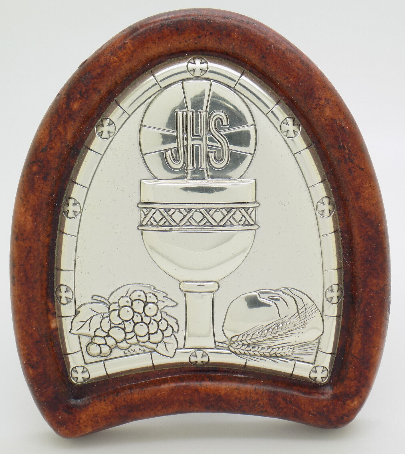 Vintage Italian Handmade Silver Lamina Sheet JHS Christian Icon (Small Defect)