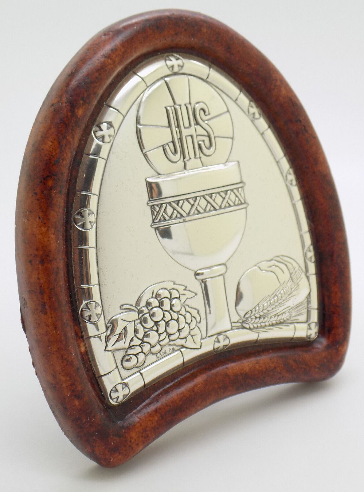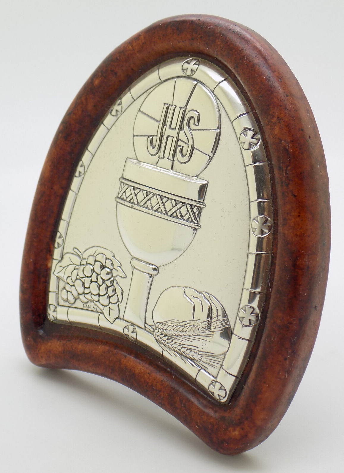 The Italian icon showcases a chalice with the letters 'JHS' above it, symbolizing Jesus.