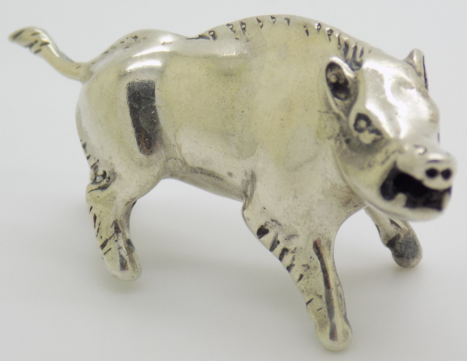 Vintage Italian Silver Boar Figurine Handmade 1970s Miniature Animal Art