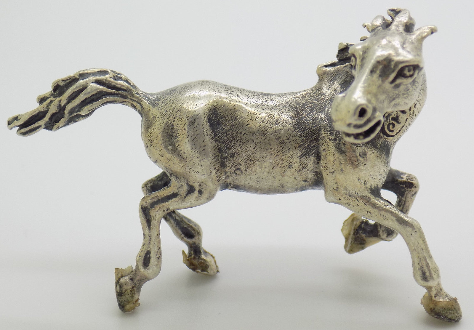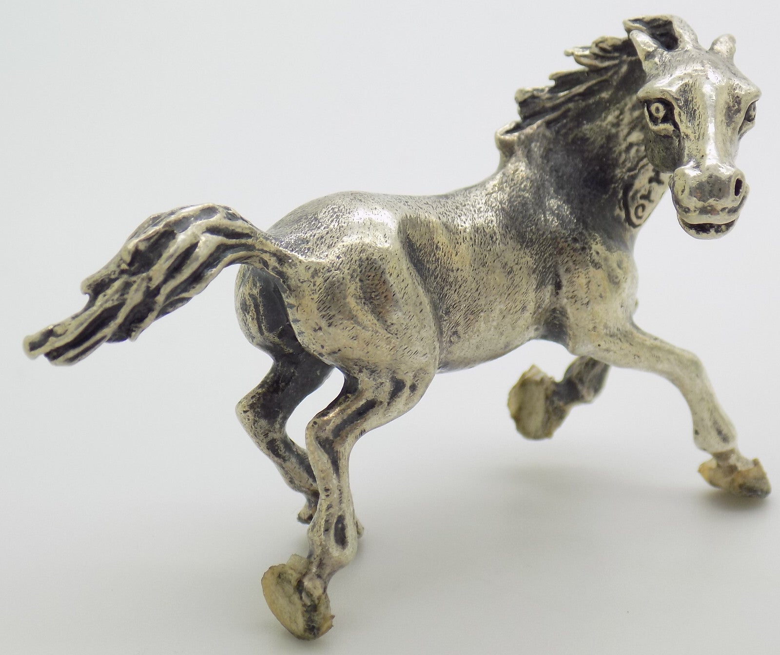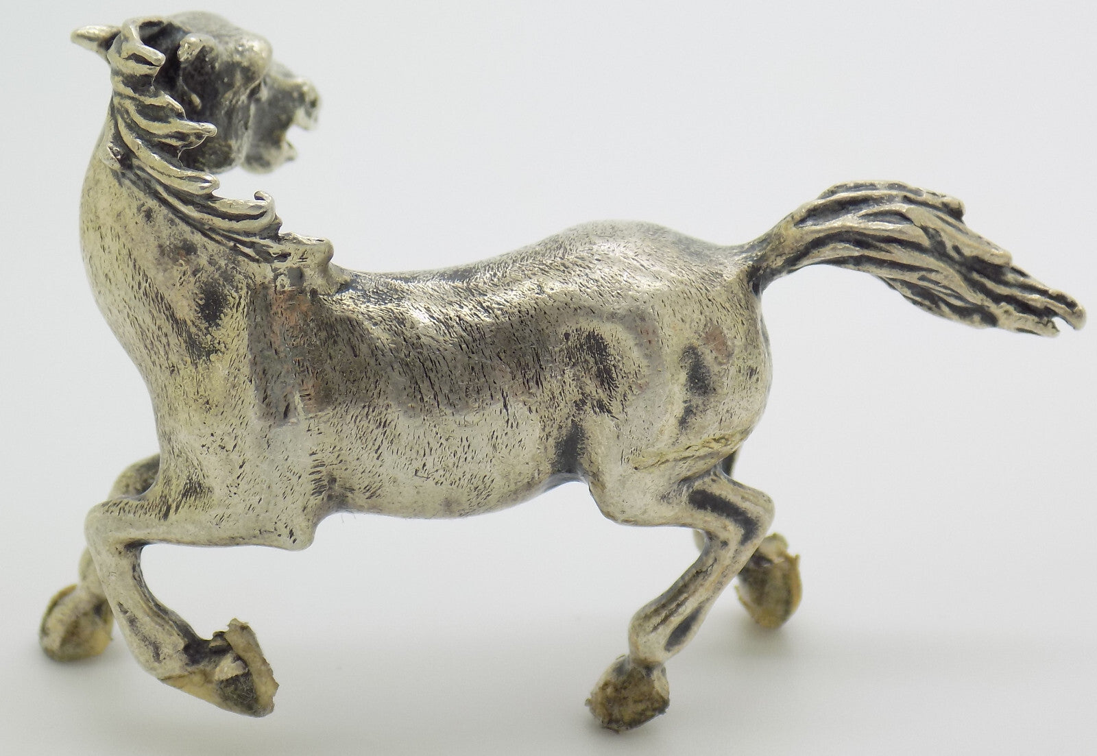 Vintage Italian Silver Galloping Horse Figurine 800 Handmade Arezzo Cerreti 1970