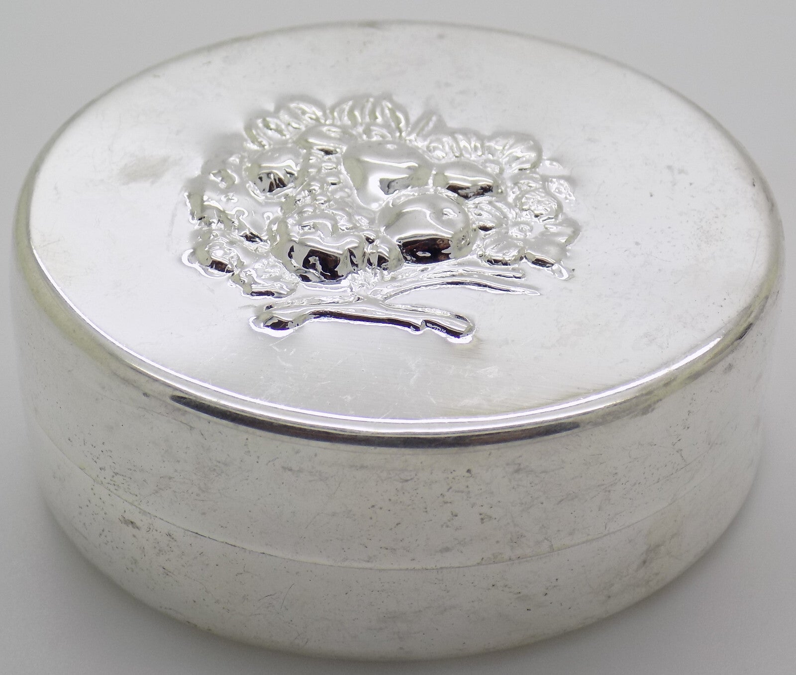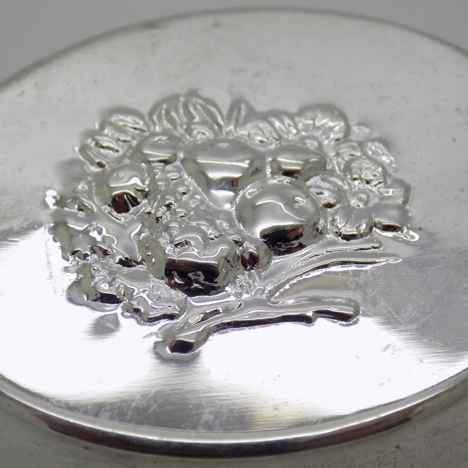 The box closes well, making it practical for small keepsakes or as a delicate addition to a vintage silver collection.