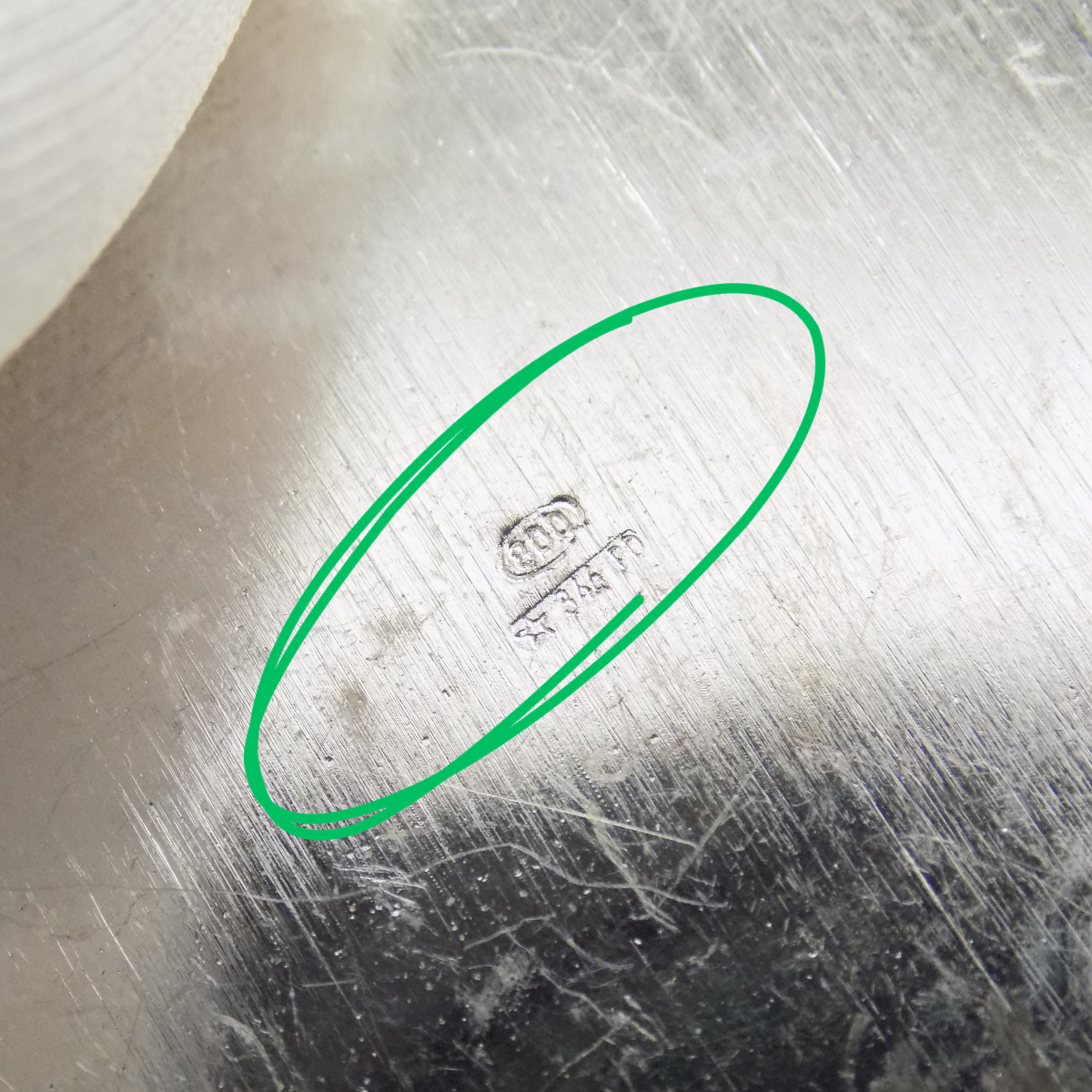 This oval-shaped trinket box is handcrafted in genuine silver, hallmarked 800 for Continental Silver (800/000) alongside the Italian Silversmith Code. Made in Padova, Veneto, during the 1980s or 1990s, it reflects the region’s tradition of fine silverwork.