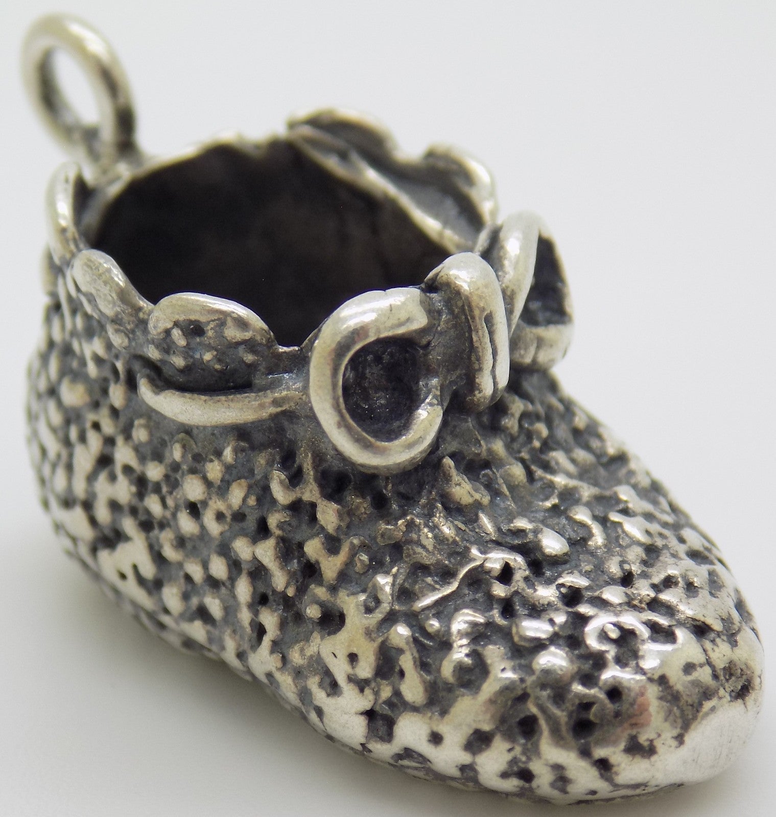Vintage Italian Sterling Silver Newborn Shoe Miniature Pendant Handmade 925 Gift