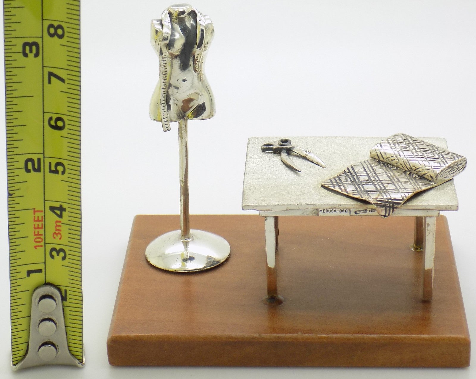 Vintage Italian Sterling Silver & Wood Medusa-Oro Sewing Studio Set Figurine
